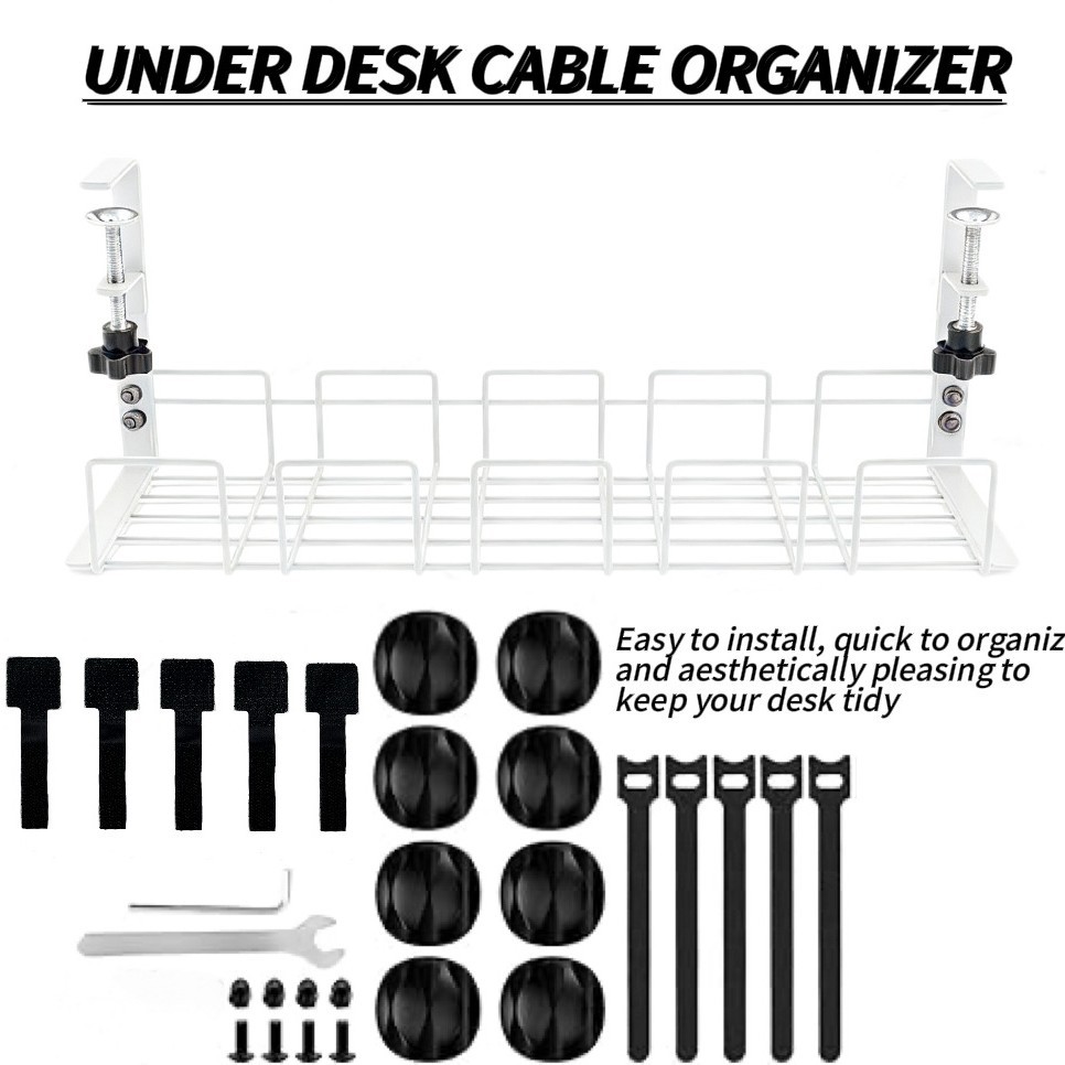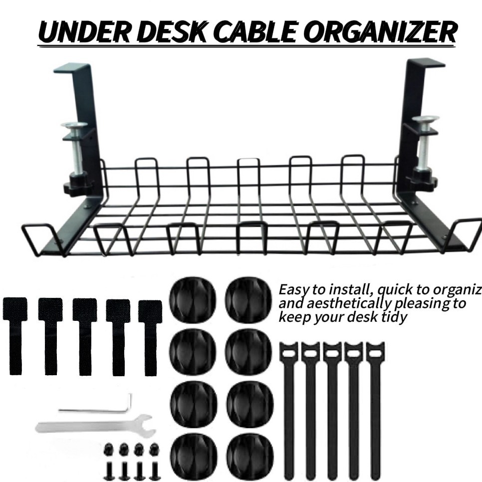 탁상 밑에 설치하는 무타공 수납 선반, 전선 및 콘센트 정리함, 사무실 책상용 낮은 수납 선반