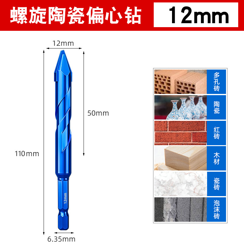 맞춤형 육각 생크 세라믹 비뚤어진 머리 편심 드릴 손 전기 드릴 드릴링 도구 유리 합금 드릴 오버 로드 삼각형 드릴 비트