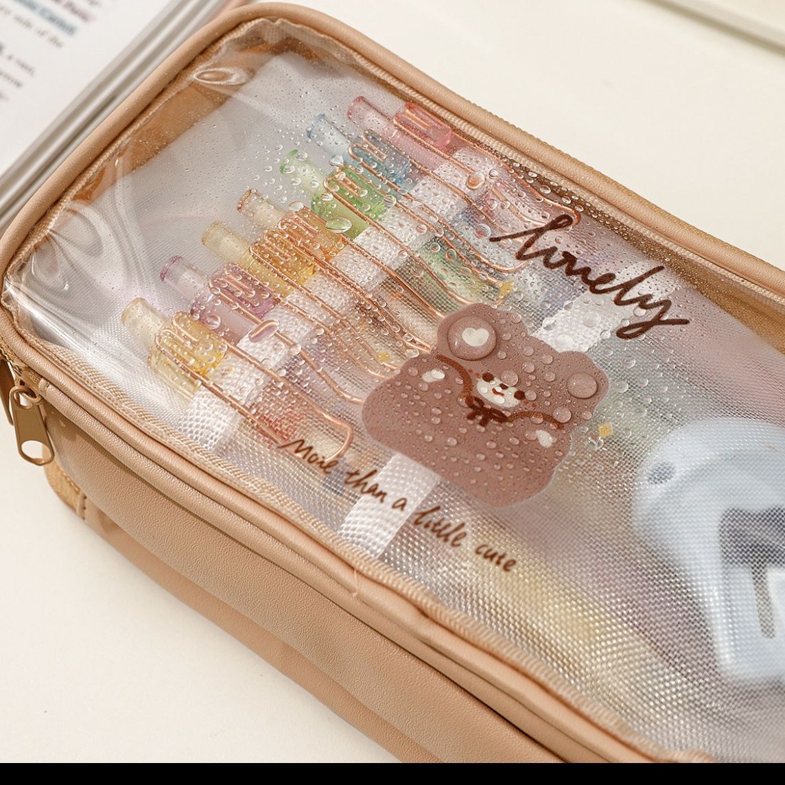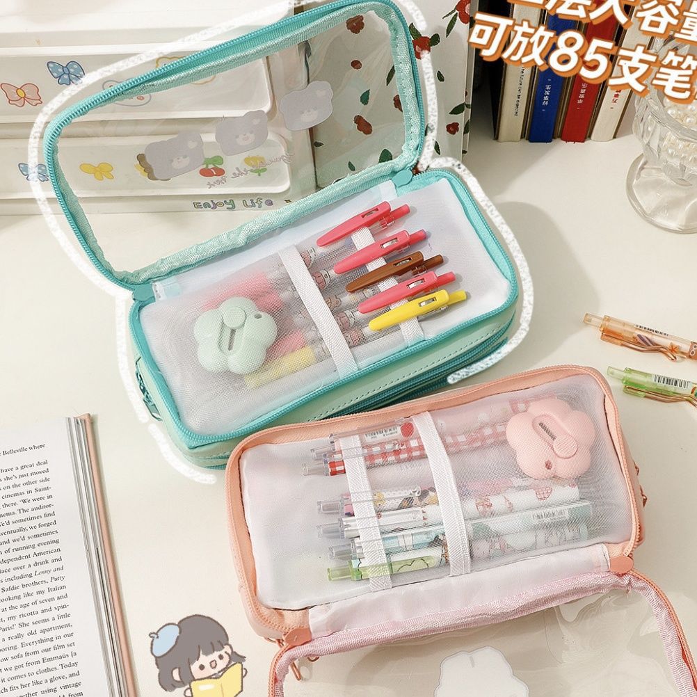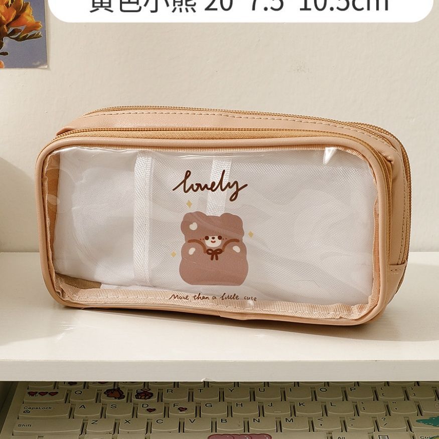 기숙사 소녀의 마음 여러 가지 빛깔의 캔디 컬러 투명 대용량 다층 필통 보관 가방스토어 가기