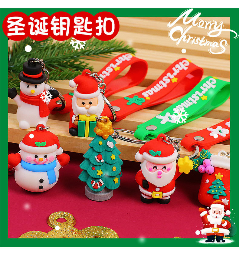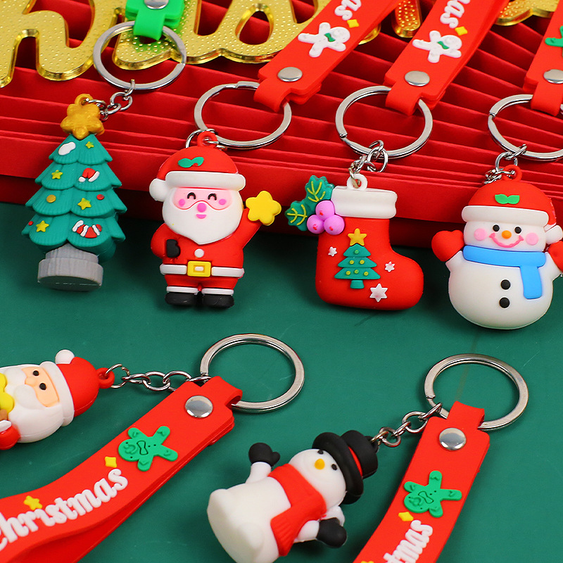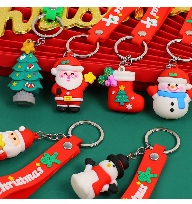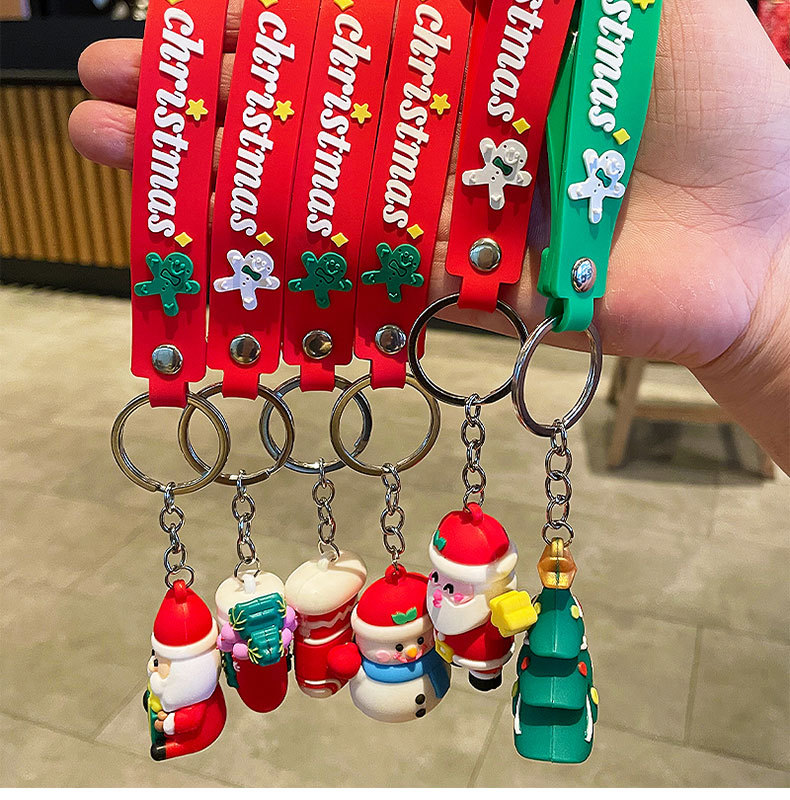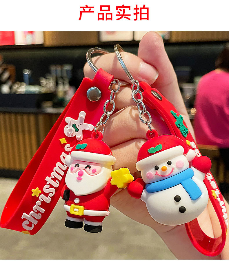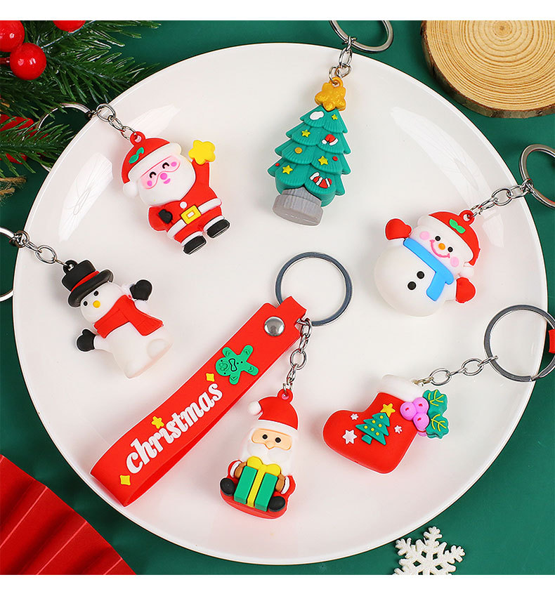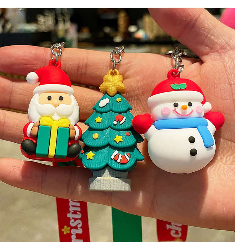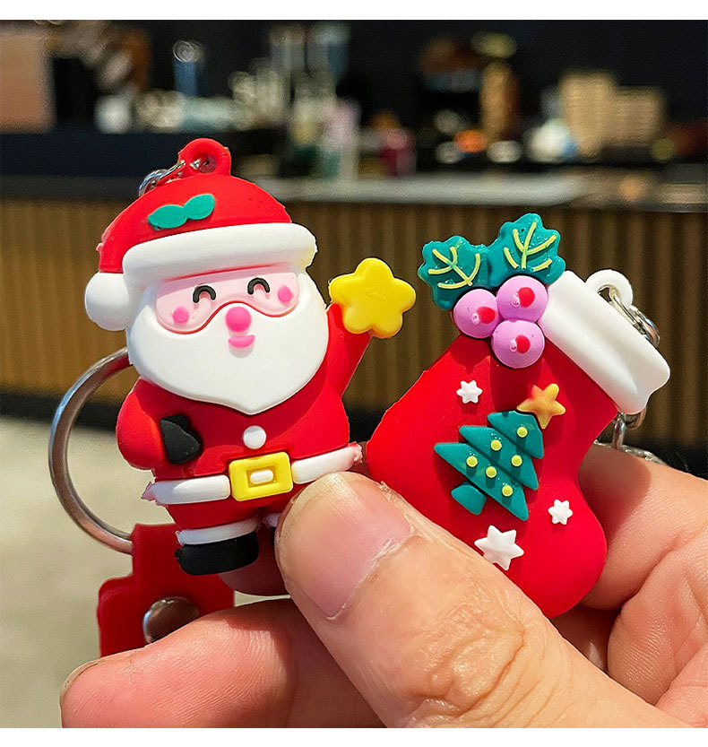 새로운 산타 클로스 열쇠 고리 만화 인형 3 차원 부드러운 고무 자동차 키 펜던트 액세서리 크리스마스 선물스토어 가기