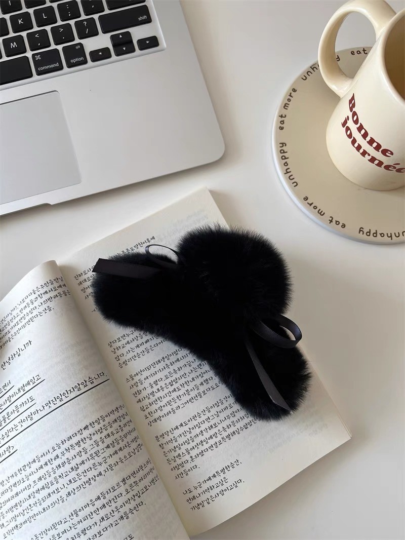 • 1#리얼 래빗 퍼 스몰 헤어핀 블랙 JB741