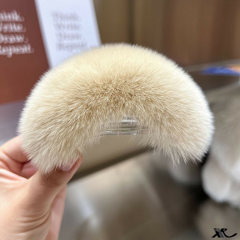 • 3#리얼 래빗 퍼 스몰 헤어핀 밀크티 컬러 JB741