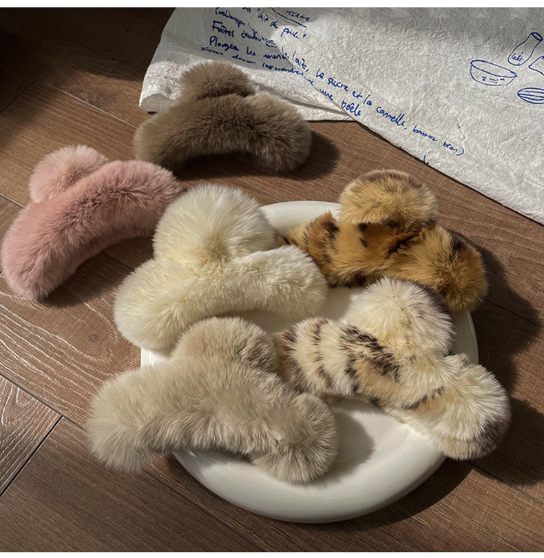 • 4 # 가죽 파우더 wrasse 토끼 헤어 그립 클립 13cm