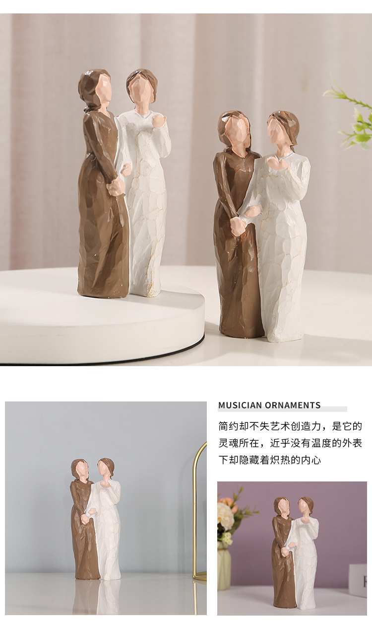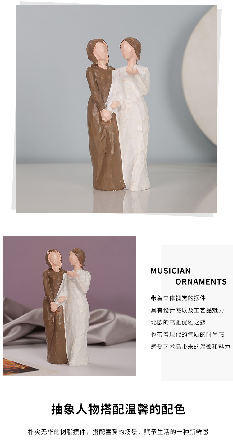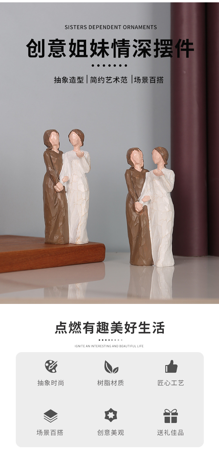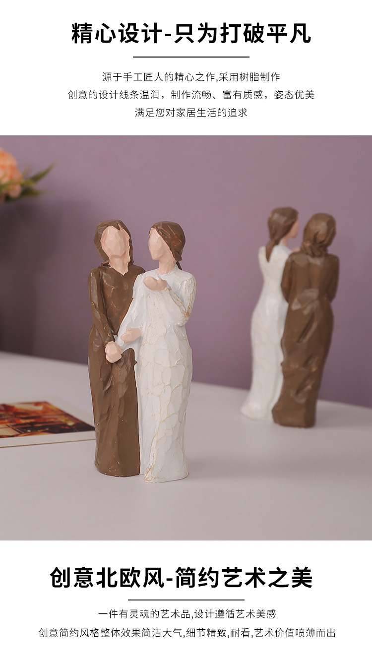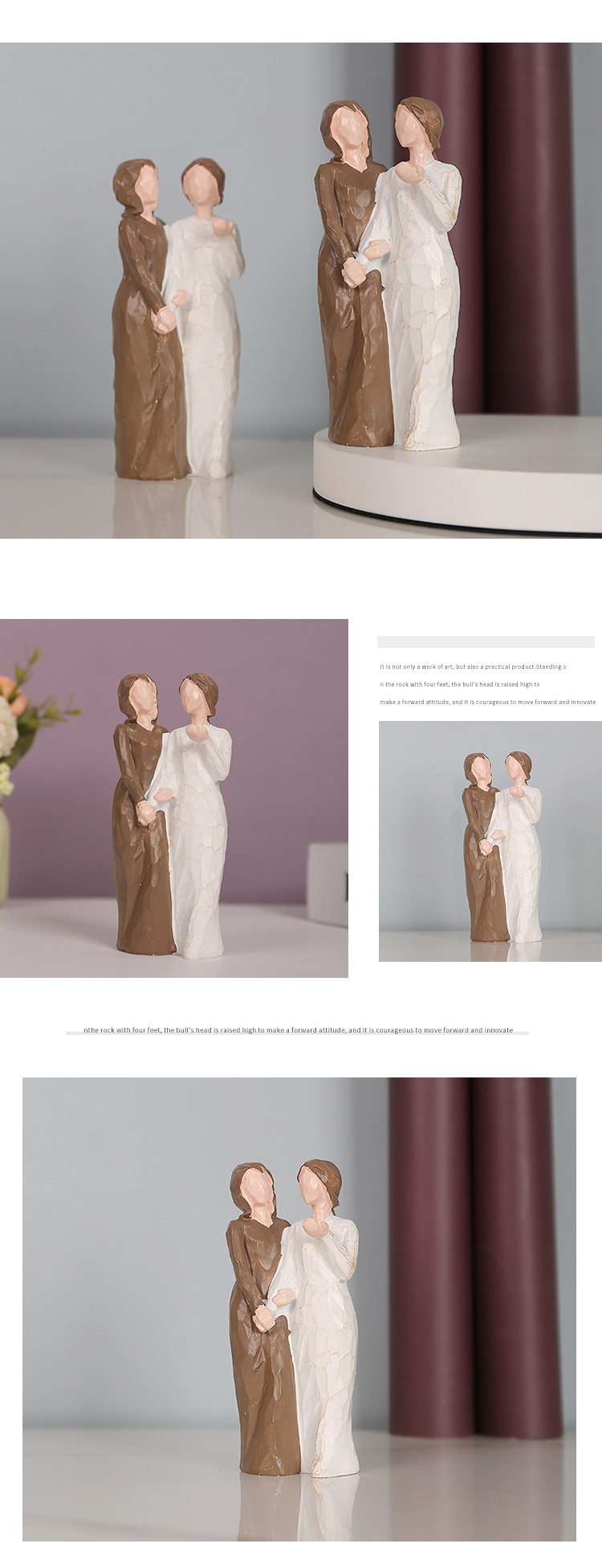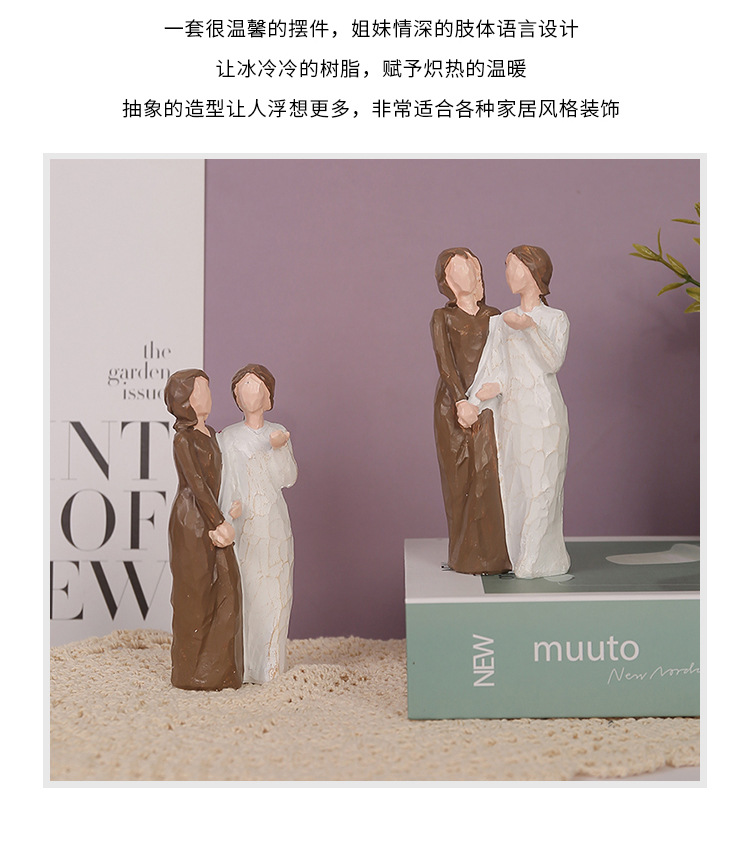 크리 에이 티브 북유럽 스타일 자매 사랑 수지 장식품 추상 예술 피규어 동상 장식 친구 기념 선물