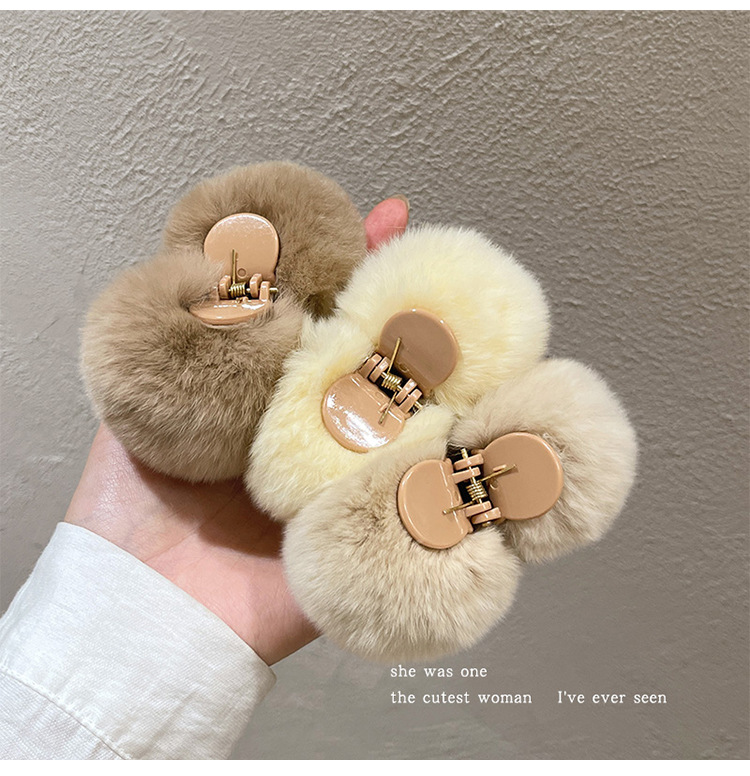 귀여운 헤어 볼 머리핀 여성의 가을과 겨울 봉제 그립 클립 볼 헤어 그립 고급 감각 클립 머리 장식 헤어 액세서리 머리핀스토어 가기