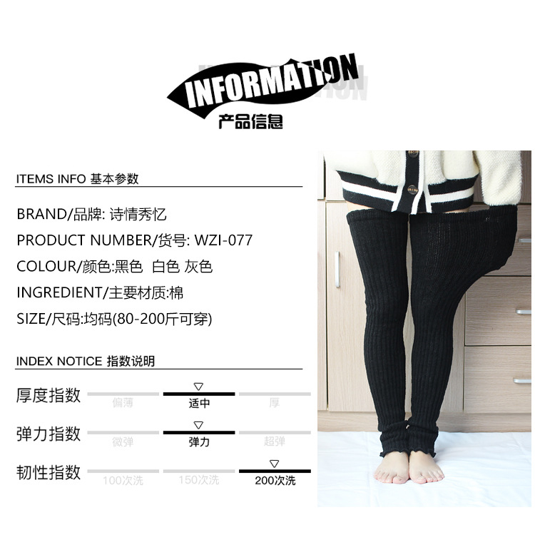 무릎 위로 두껍게 한 남성과 여성을위한 초대형 롱 튜브 양말 300kg 니트 울 하이 튜브 허벅지 블랙 JK 학생스토어 가기