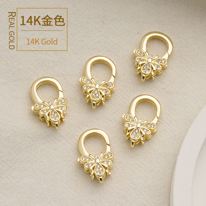 구리 도금 18K 리얼 골드 백 골드 하이 컬러 유지 마이크로 지르콘 꿀벌 모양의 랍스터 버클 diy 프리미엄 보석 버클 봄 버클스토어 가기