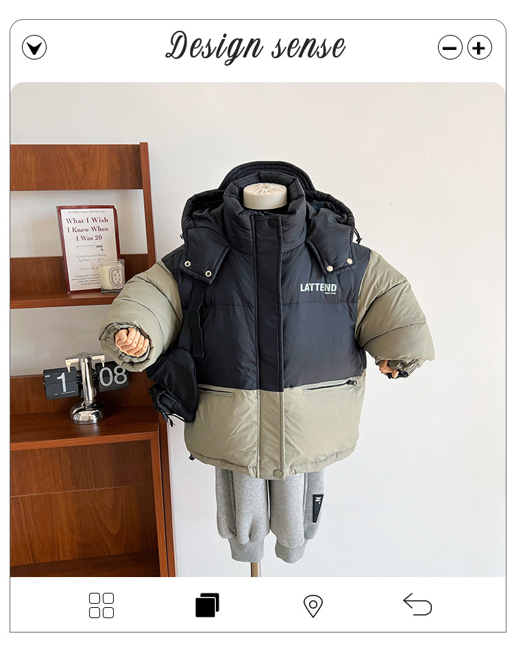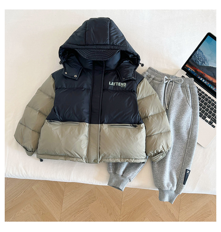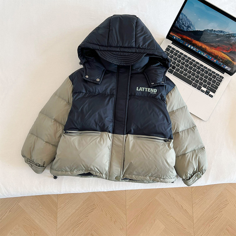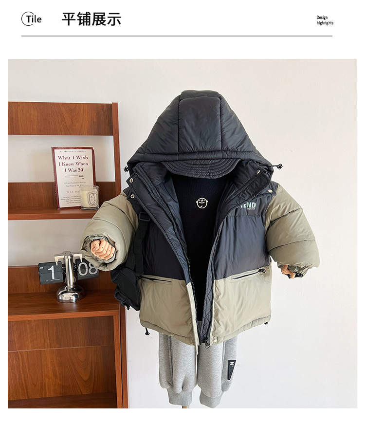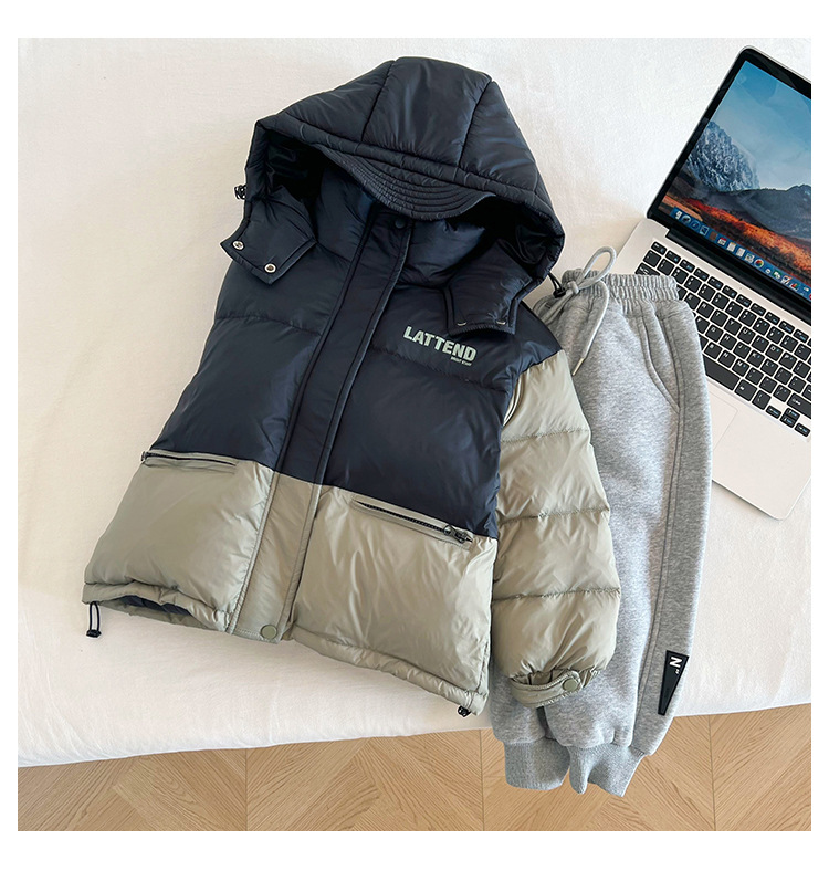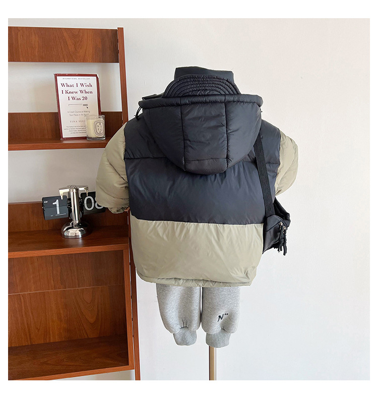 윈드 밸리 2023 겨울 신상품 아동복 한국식 대비 컬러 후드 다운 재킷 남아 만능 핸섬 탑