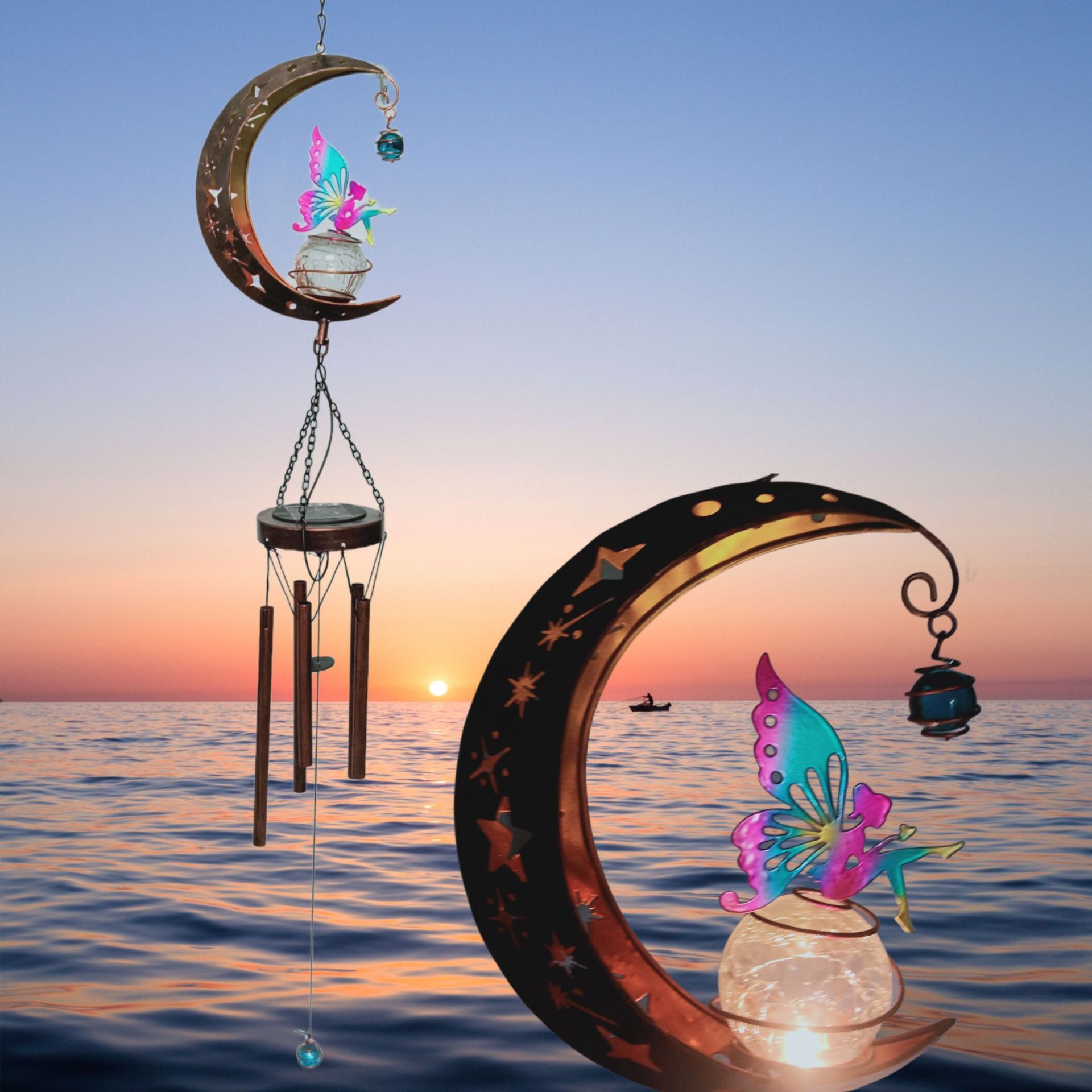 태양 바람 차임 달 야외 바람 차임 펜던트 정원 정원 풍경 램프 단철 달 장식 램프