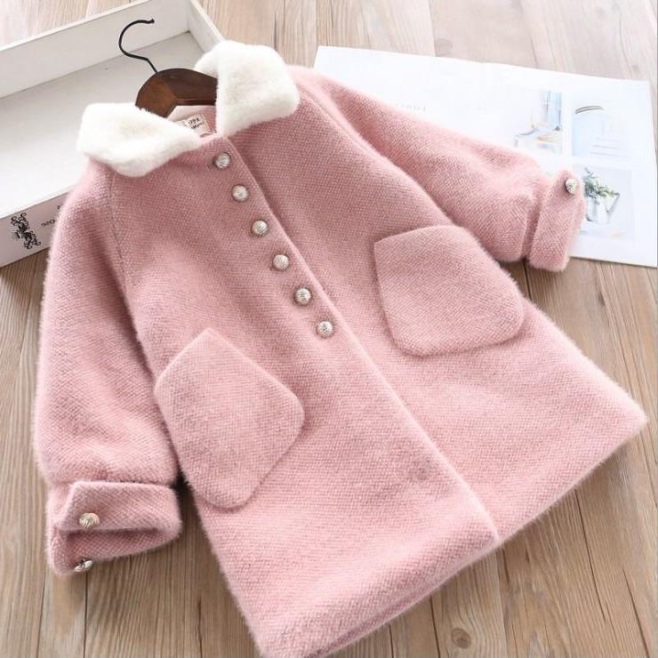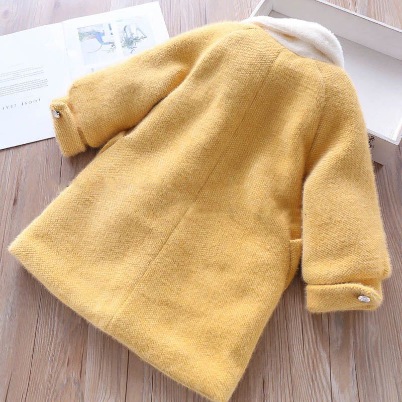 Hui Eight Seasons Girls' 밍크 벨벳 두꺼운 퀼트 코트 새로운 겨울 의류 아동용 중간 길이 한국식 모직 코트스토어 가기
