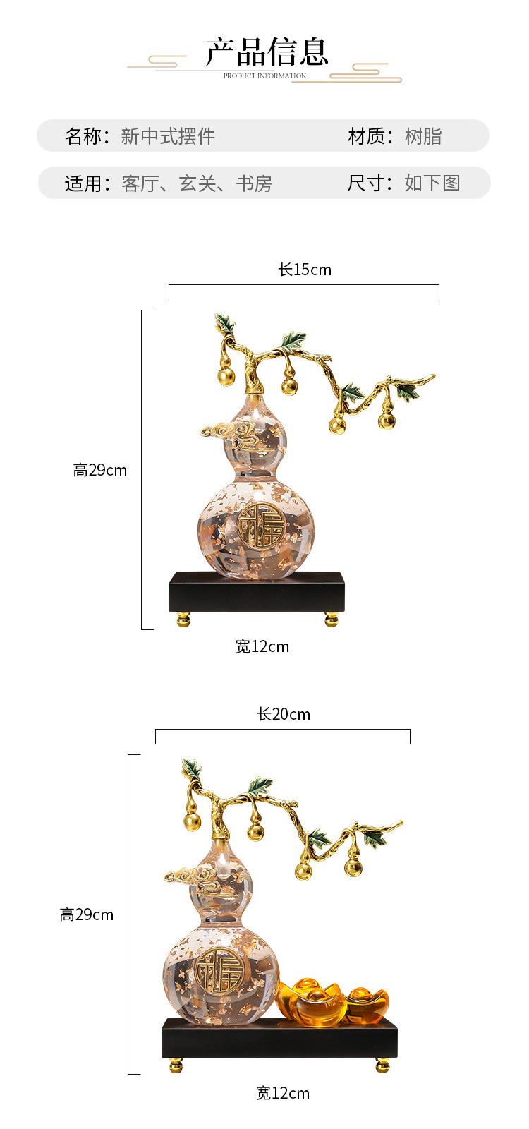 크리스탈 조롱박 장식품 새로운 중국 스타일 거실 TV 캐비닛 장식 주요 사무실 고급 새 집 선물스토어 가기