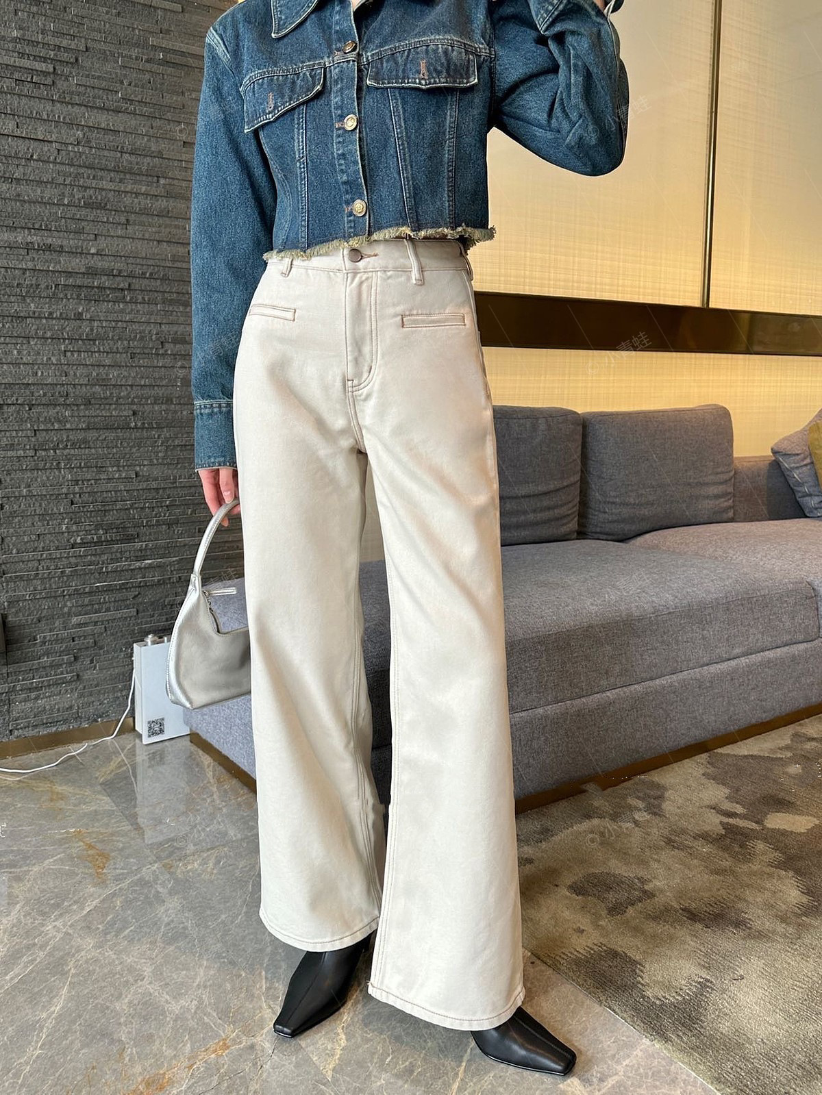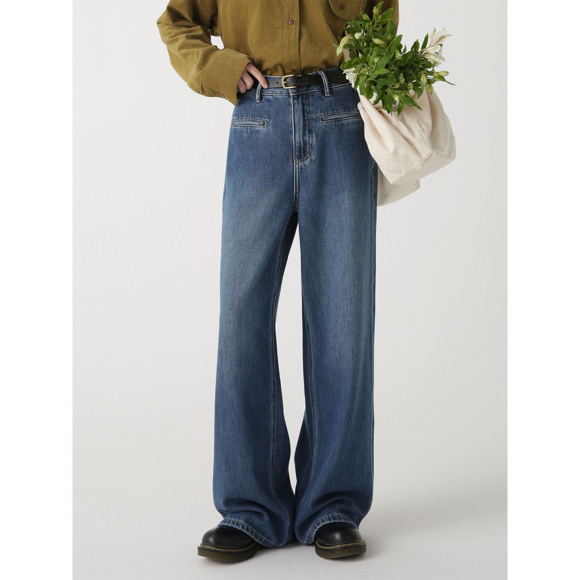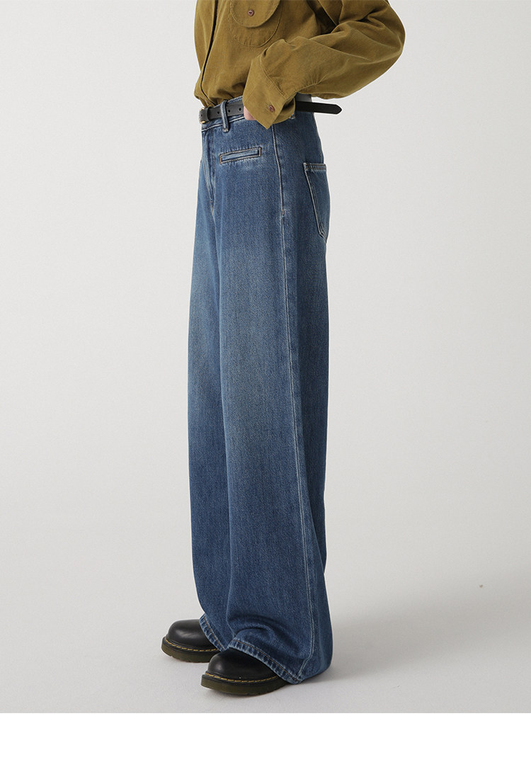유럽과 미국 스타일 하이 퀄리티 스트레이트 레그 와이드 레그 청바지 여성의 가을과 겨울 비디오 카드 키 큰 바지 하이 웨이스트 바지스토어 가기