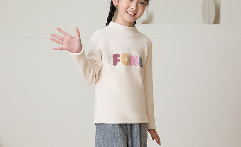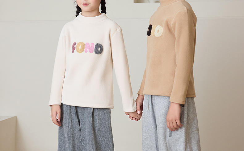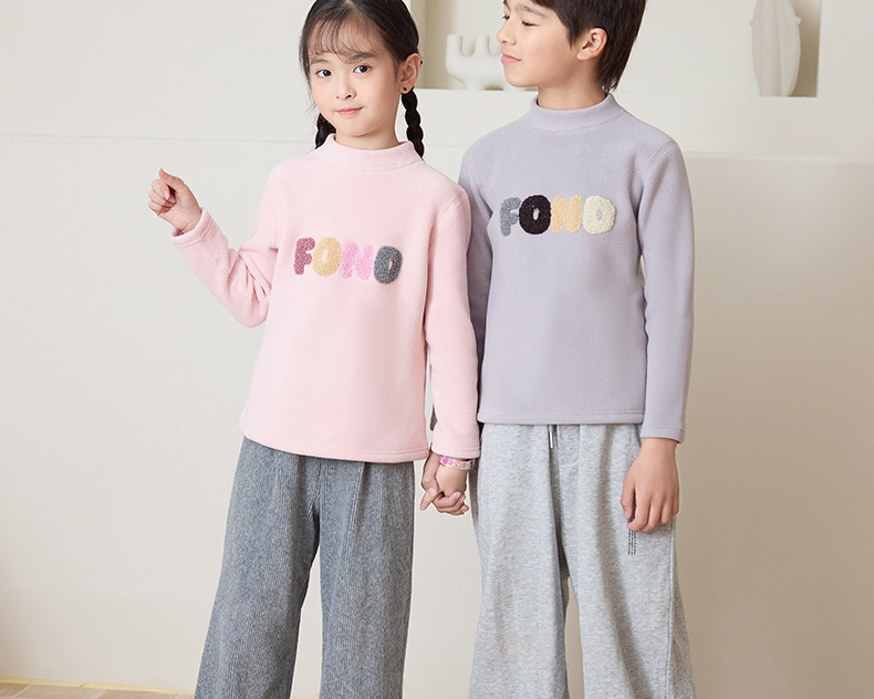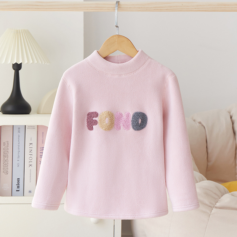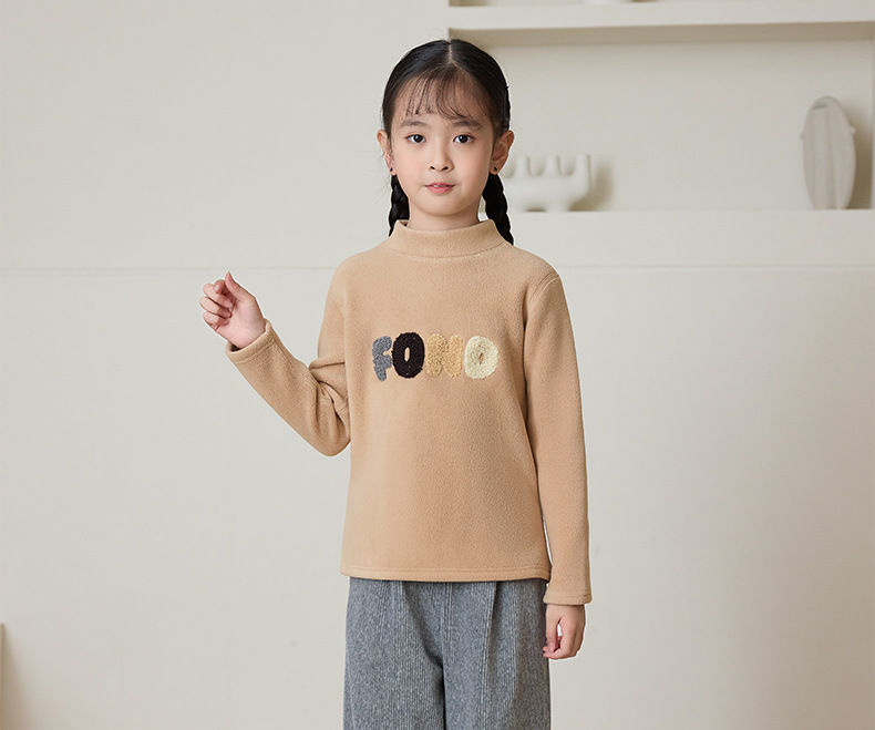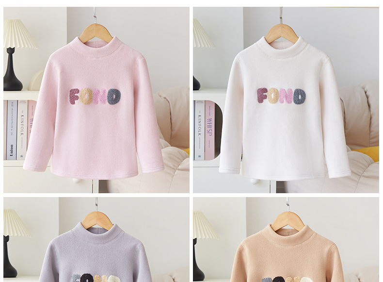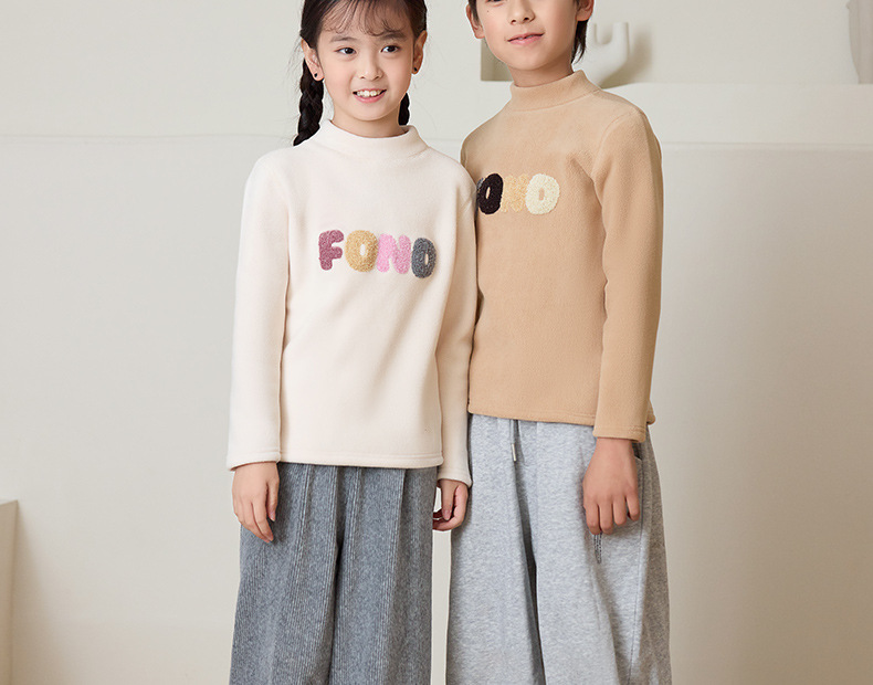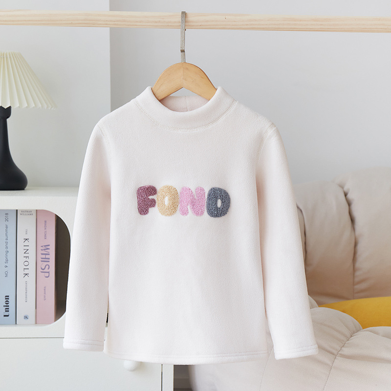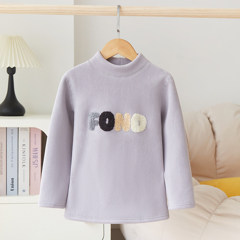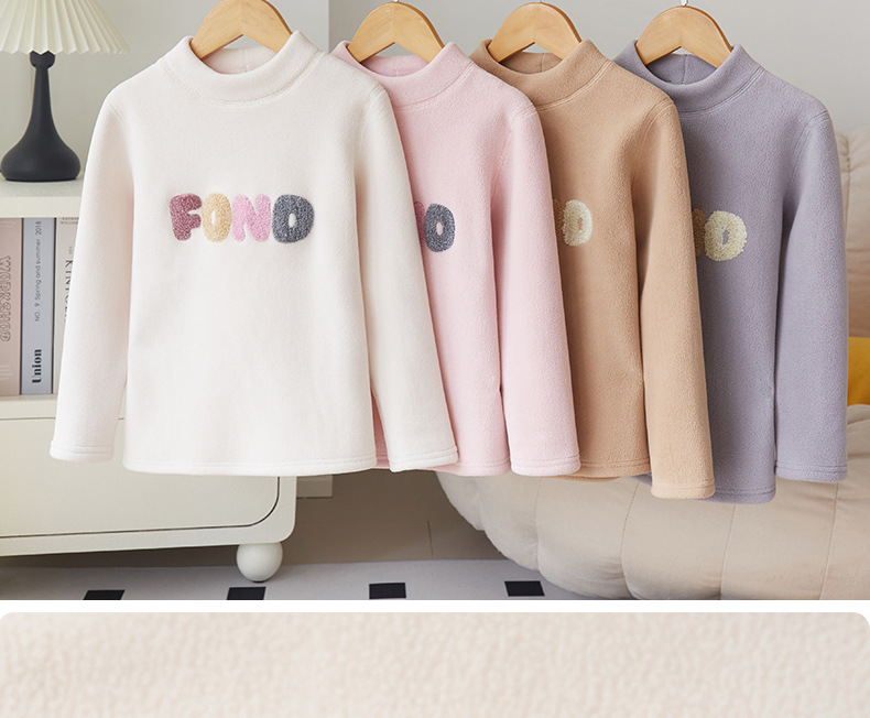 남아 및 여아용 겨울 아동용 벨벳 두꺼운 바닥 셔츠, 미드 하이 칼라 폴라 플리스 따뜻한 이너 탑 카테고리 A스토어 가기
