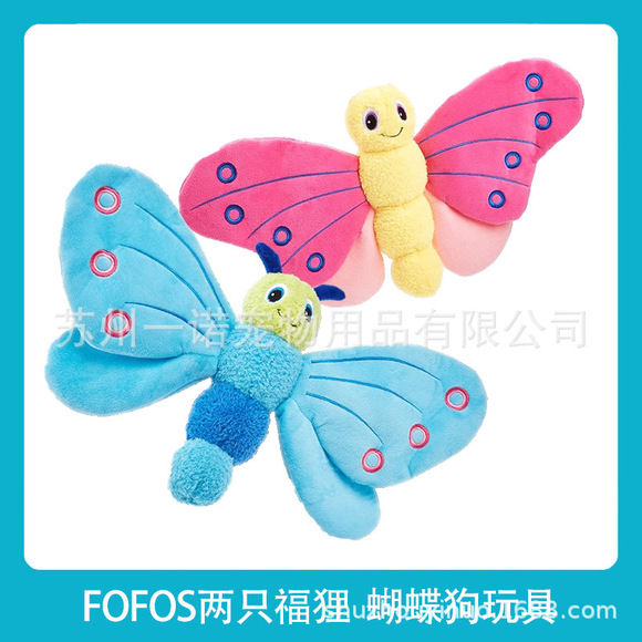 FOFOS两只福狸 蝴蝶响纸发声狗狗玩具毛绒宠物玩具小狗玩具解闷