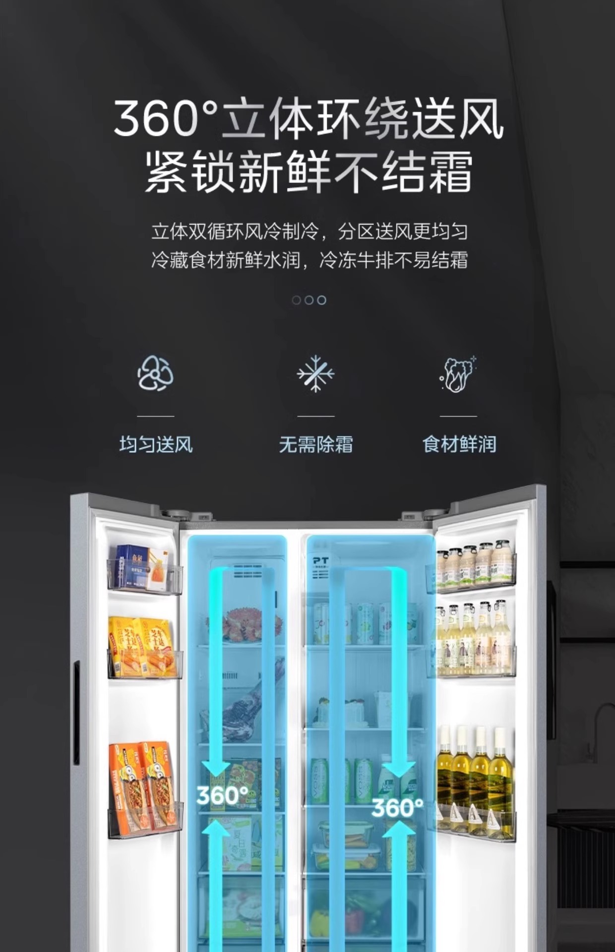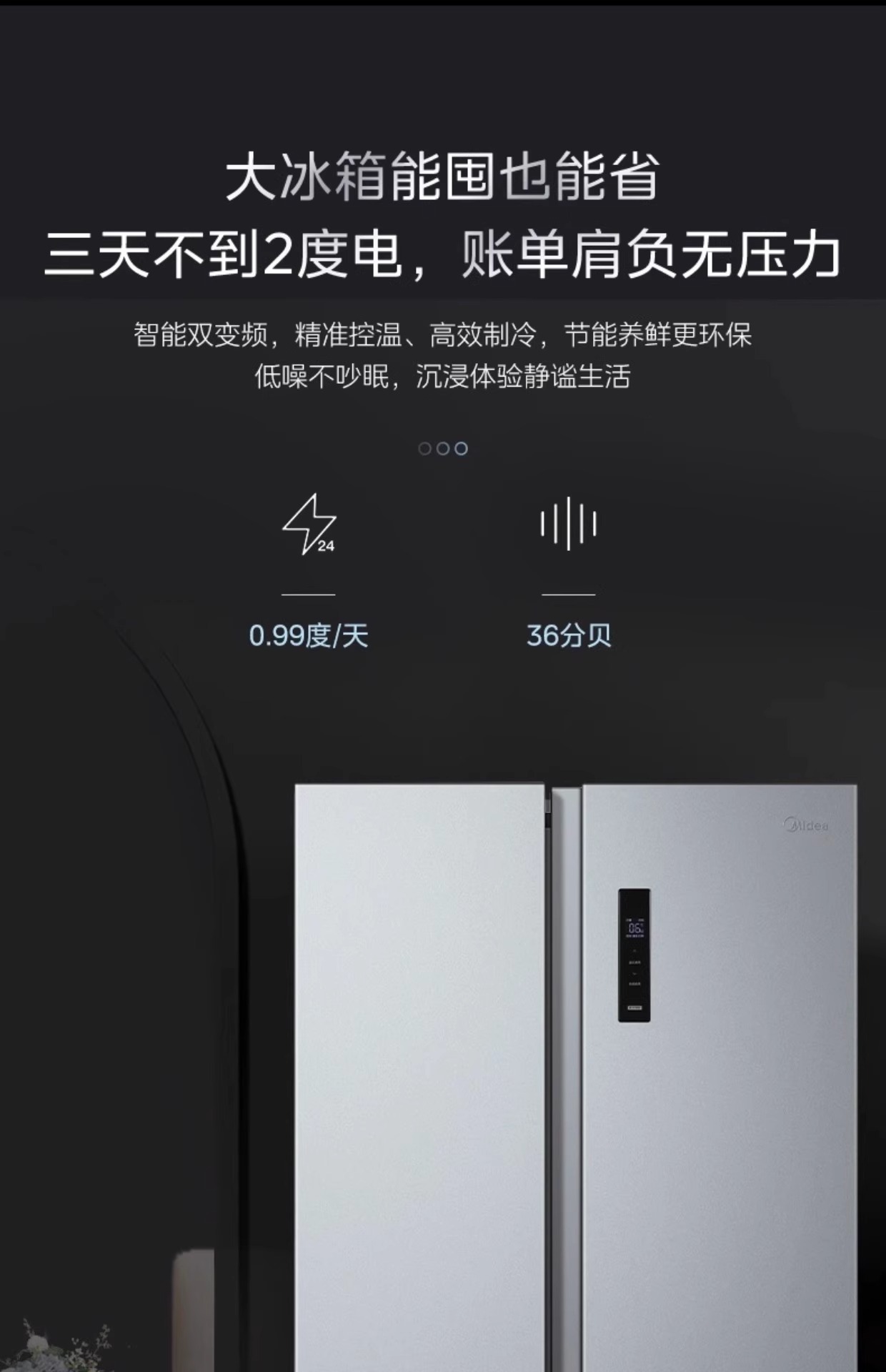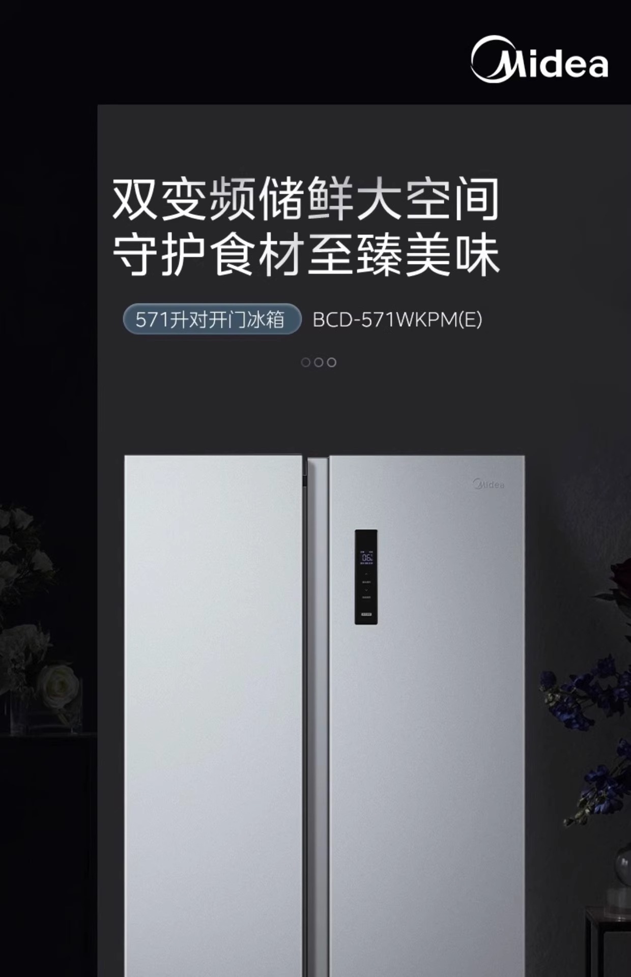 Midea/Midea BCD-571WKPM(E) 양문형 냉장고 공냉식 서리 방지 인버터 절전 가정용 대용량스토어 가기