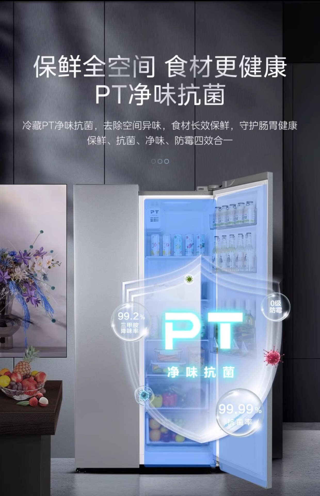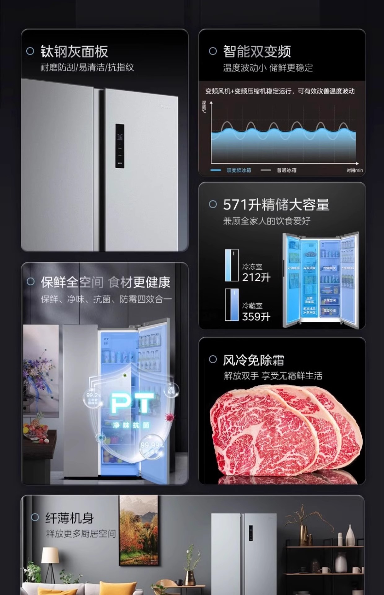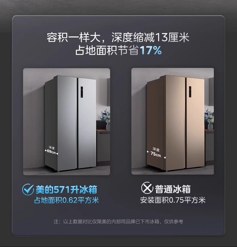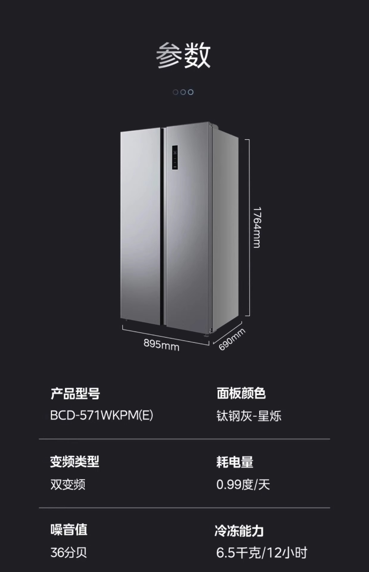 Midea/Midea BCD-571WKPM(E) 양문형 냉장고 공냉식 서리 방지 인버터 절전 가정용 대용량스토어 가기