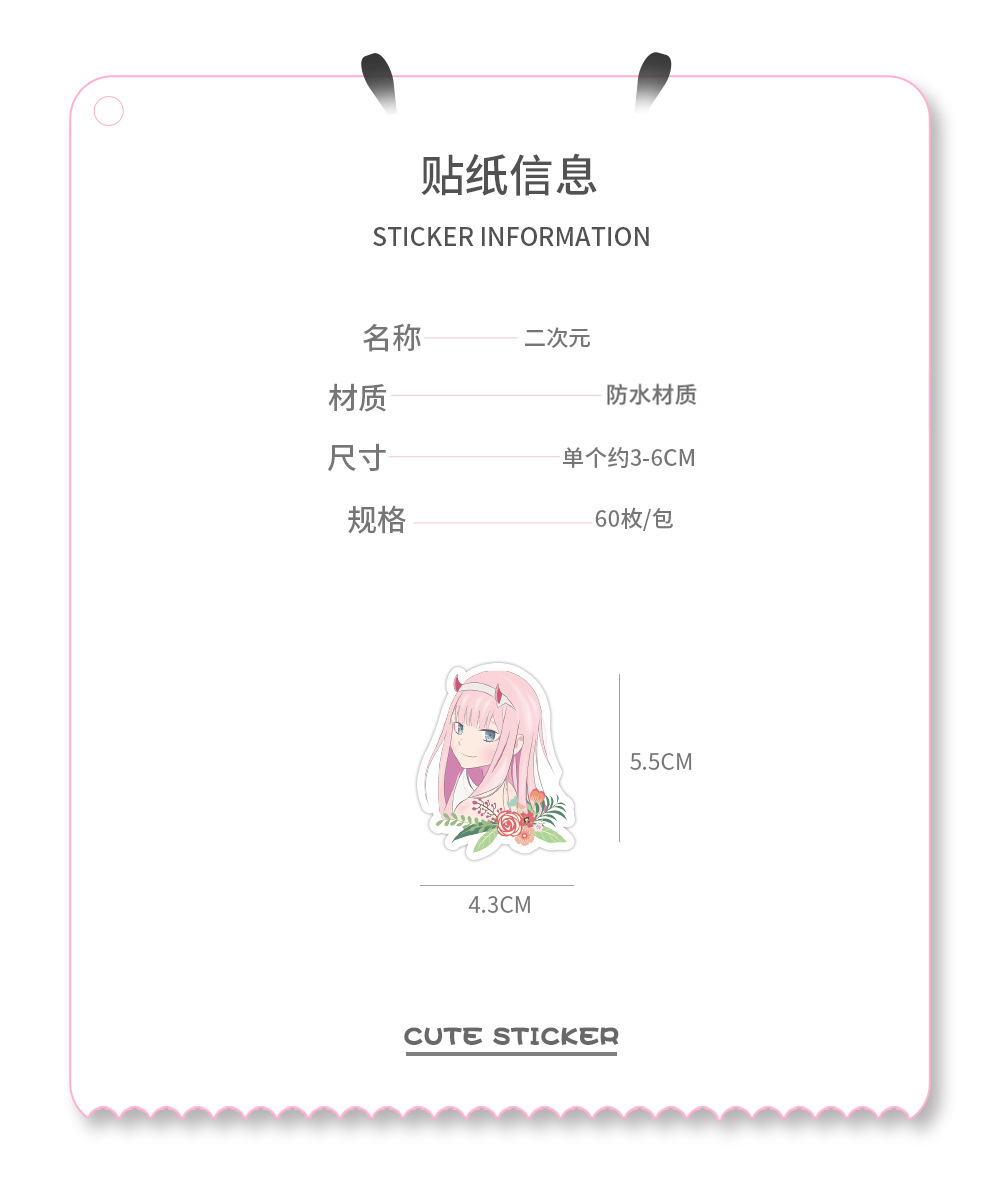 이차원 만화 스티커 60 개, 매일 애니메이션 주변 창작 장식 노트 문구 손 계정 재료 스티커스토어 가기