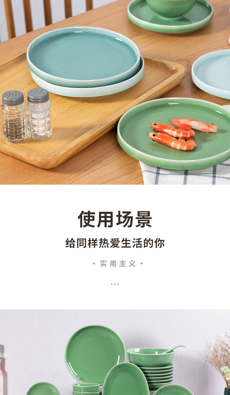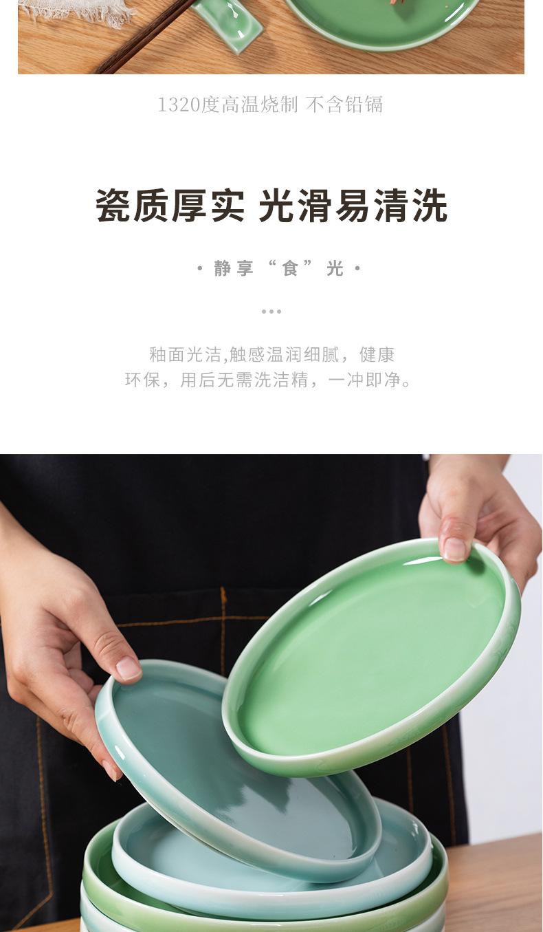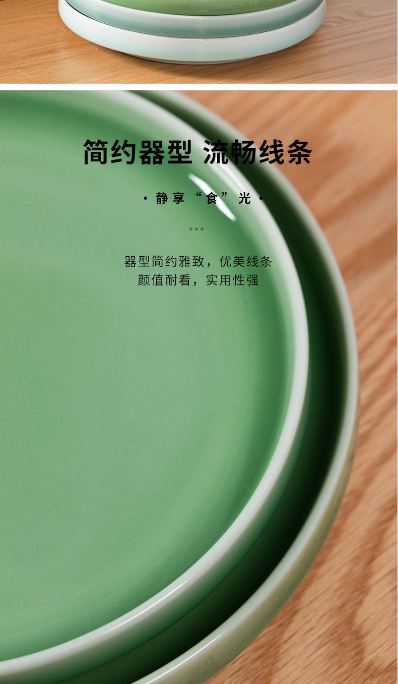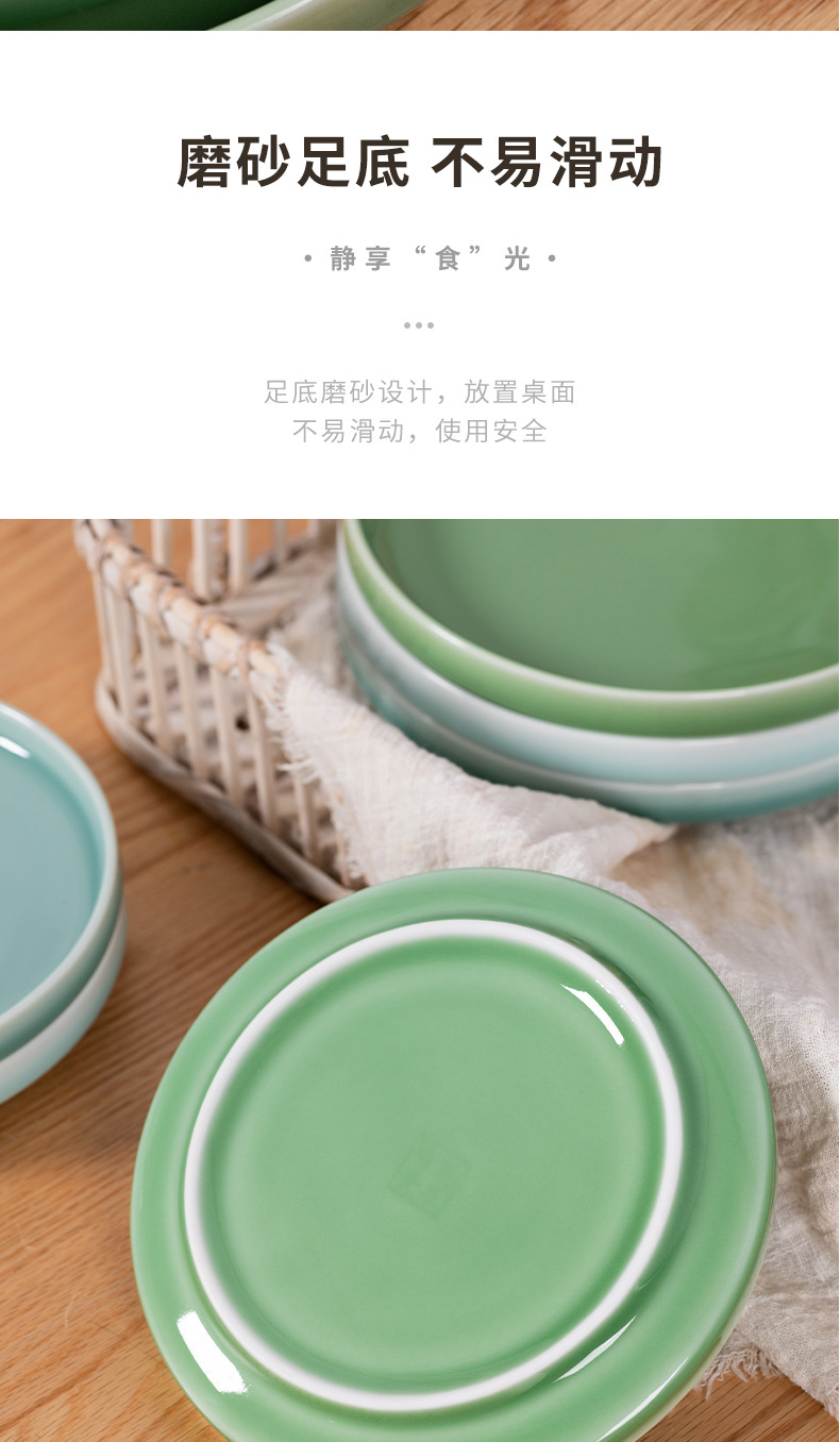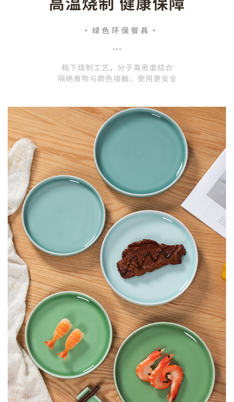 Longquan 청자 접시 뼈 접시 얕은 접시 가정 아침 식사 접시 평판 세라믹 호텔 과일 접시 서양 접시 식기스토어 가기