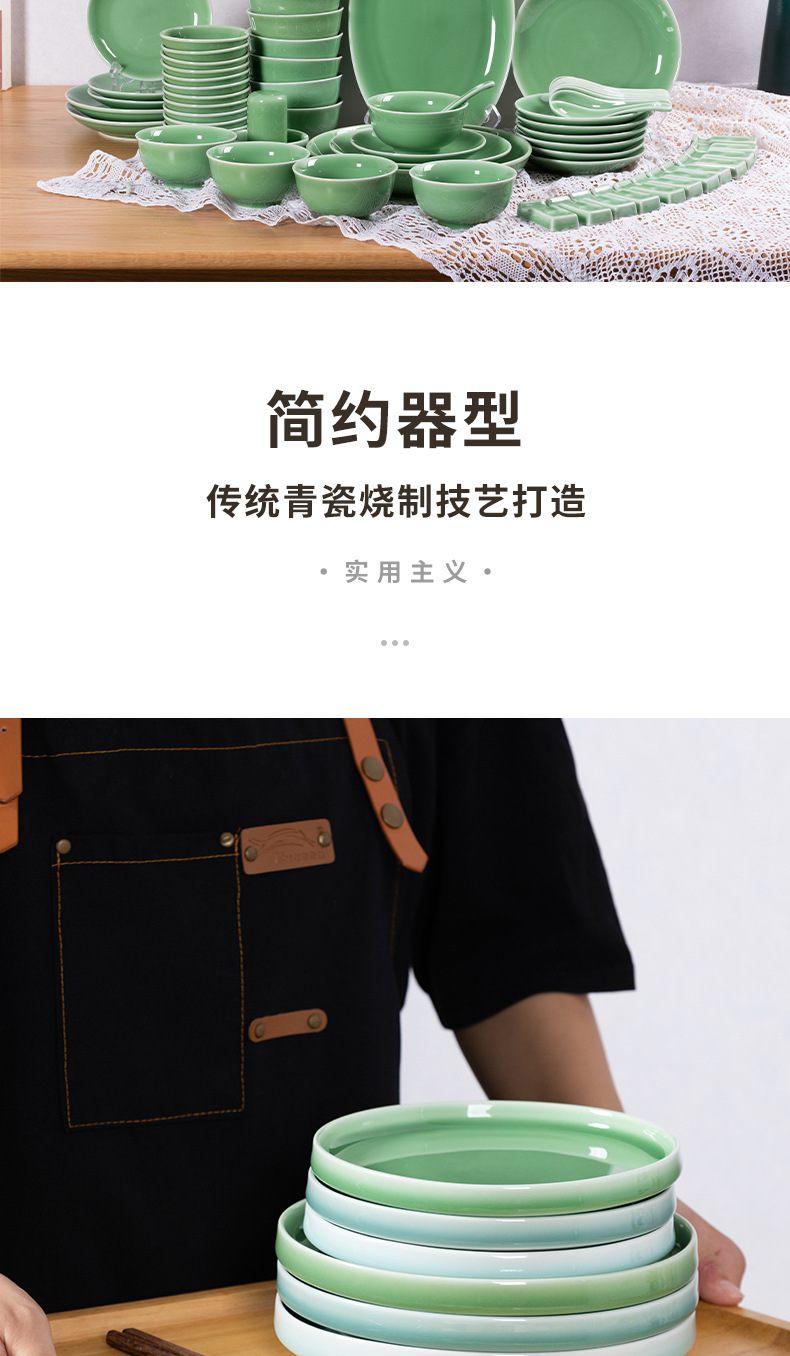 Longquan 청자 접시 뼈 접시 얕은 접시 가정 아침 식사 접시 평판 세라믹 호텔 과일 접시 서양 접시 식기