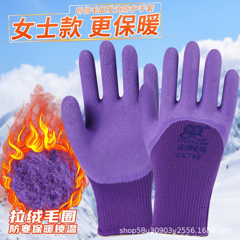 Chuangxin CX788 여성 스몰 사이즈 테리 폼 기모 두껍게 담근 겨울 따뜻한 건설 현장 노동 보호 장갑