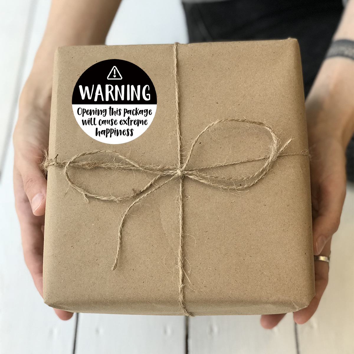 120 스티커 경고 이 패키지를 열면 극도의 행복을 가져올 것입니다 스티커 배송 우편 상자 봉투 스티커스토어 가기