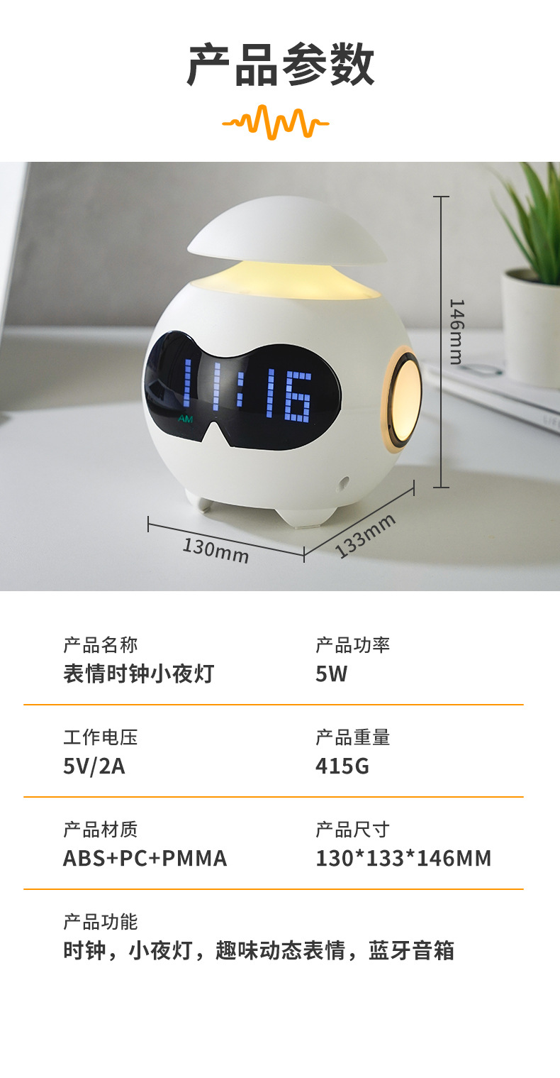 학생용 타이머 알람시계 블루투스 스피커 메모리 시계 침대 옆 다채로운 분위기 조명 터치 감응식 표정등