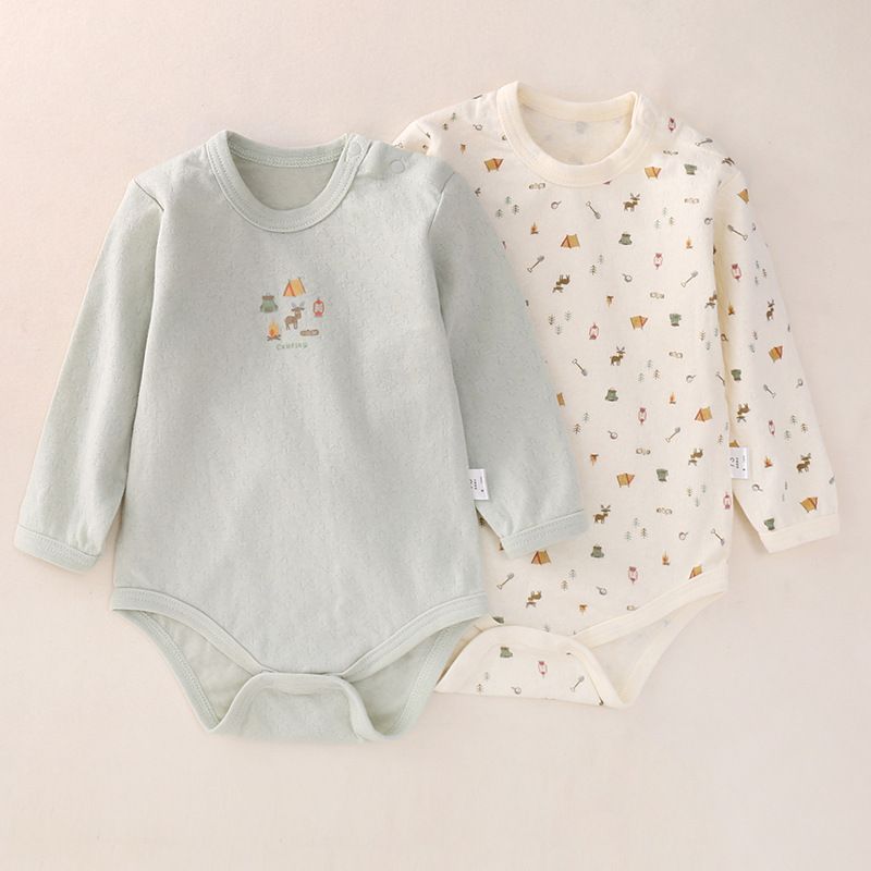 일본 봄 가을과 겨울 아기 옷 삼각형 가방 방귀 옷 순면 클래스 아기 어깨 버클 하카 등산 원피스 점프 슈트