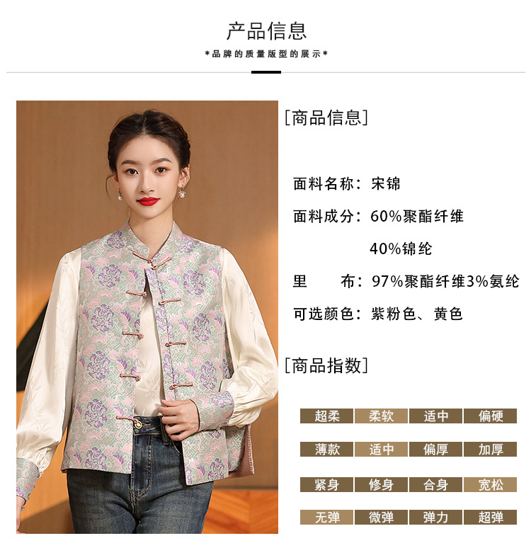 2024 봄 새로운 여성 의류 중국 스타일 칼라 탑 자카드 개선 된 빈티지 송 브로케이드 자카드 여성 조끼스토어 가기