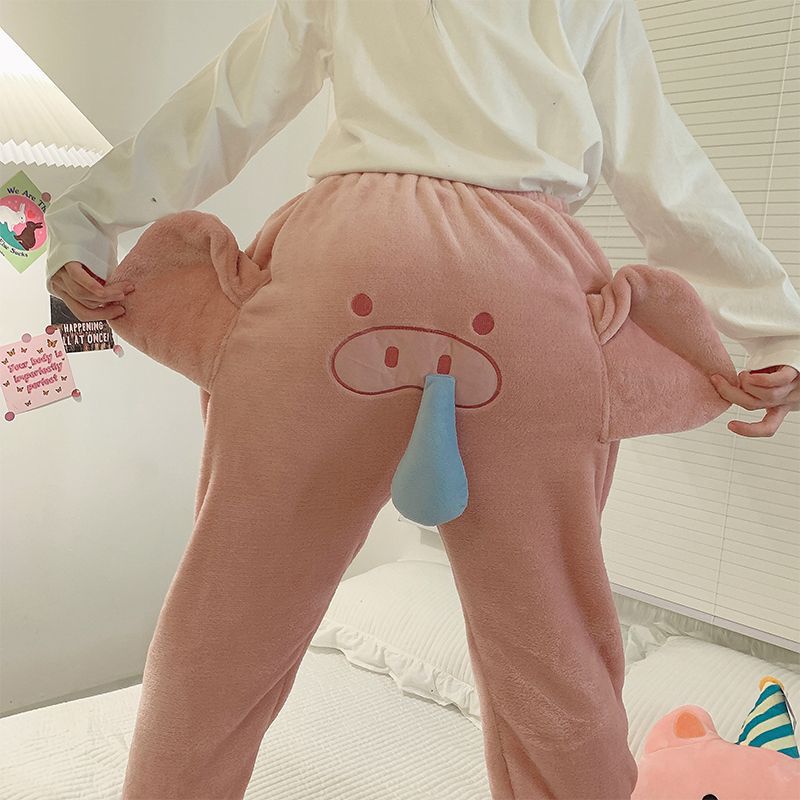 가을과 겨울 두꺼운 잠옷을 세트 귀여운 재미 삐걱 거리는 코끼리 바지 플란넬 가정 옷