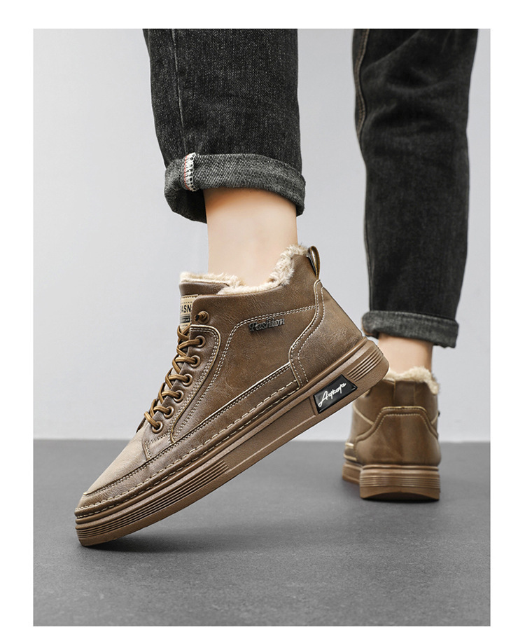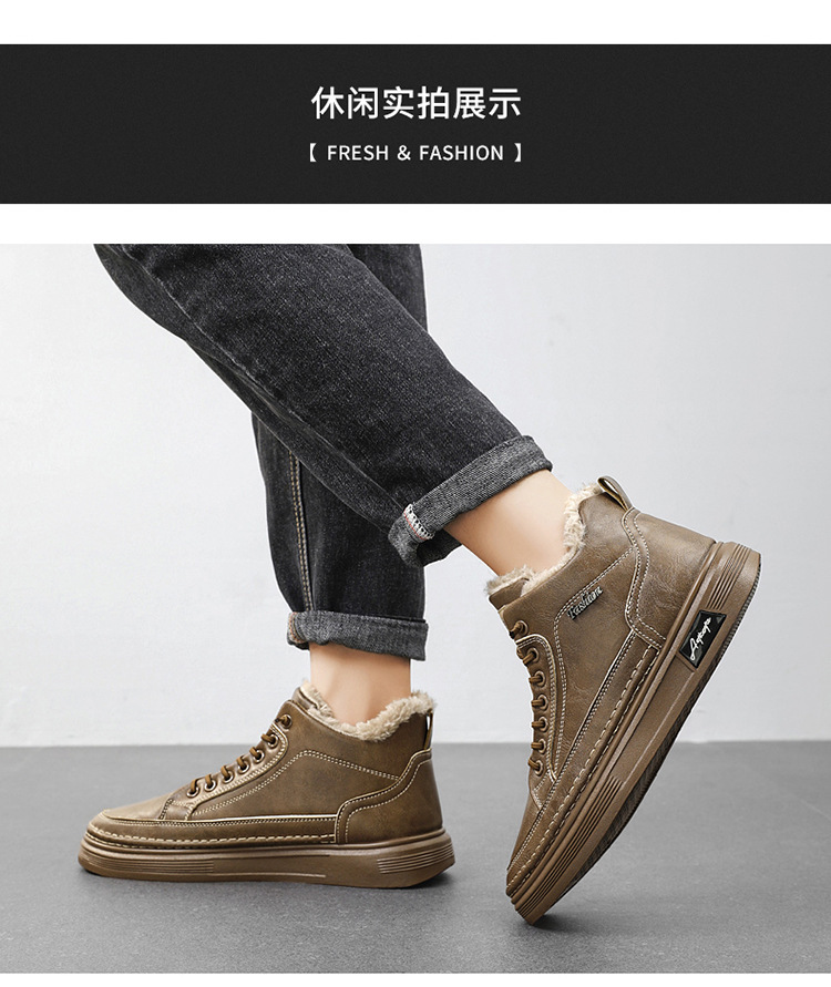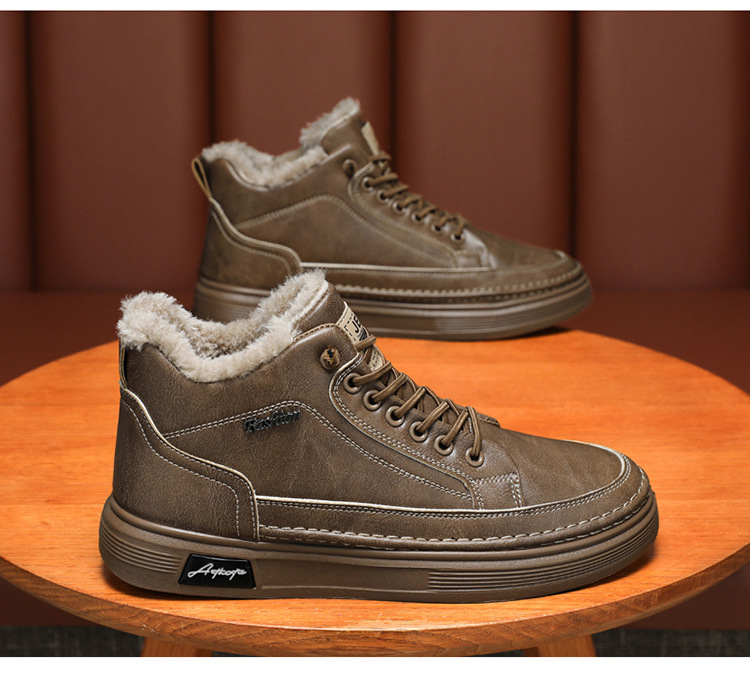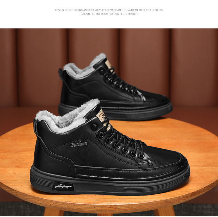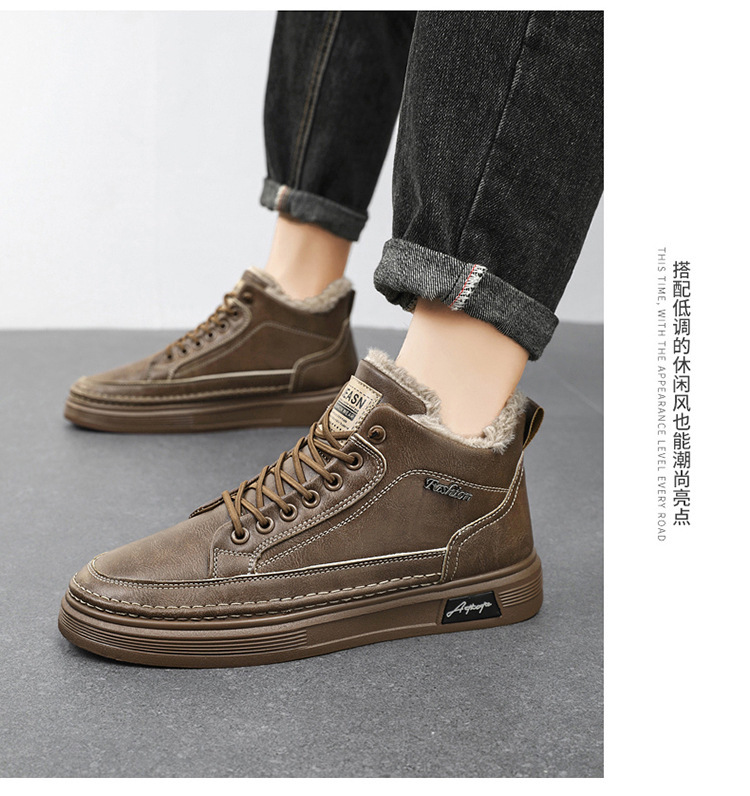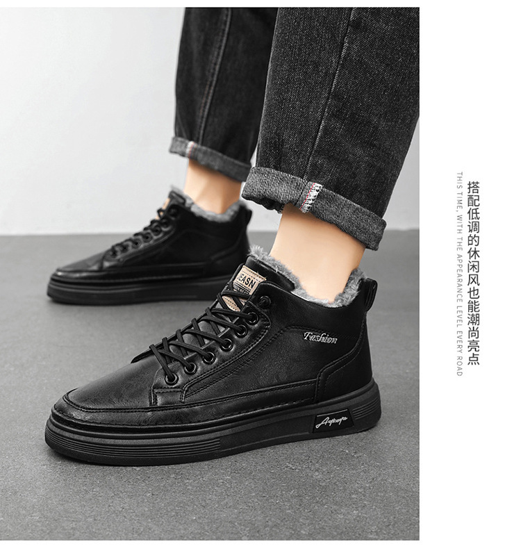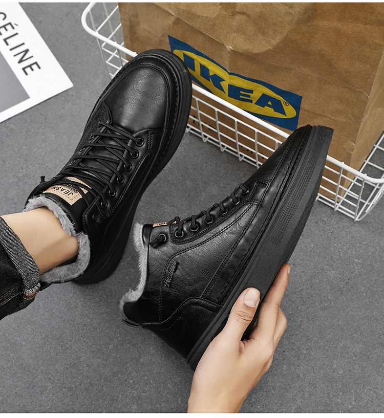 겨울 남성 신발 기모 하이탑 마틴 부츠 남성용 트렌디 모든 매치 요리사 신발 남성용 미끄럼 방지 두꺼운 따뜻한 면 신발