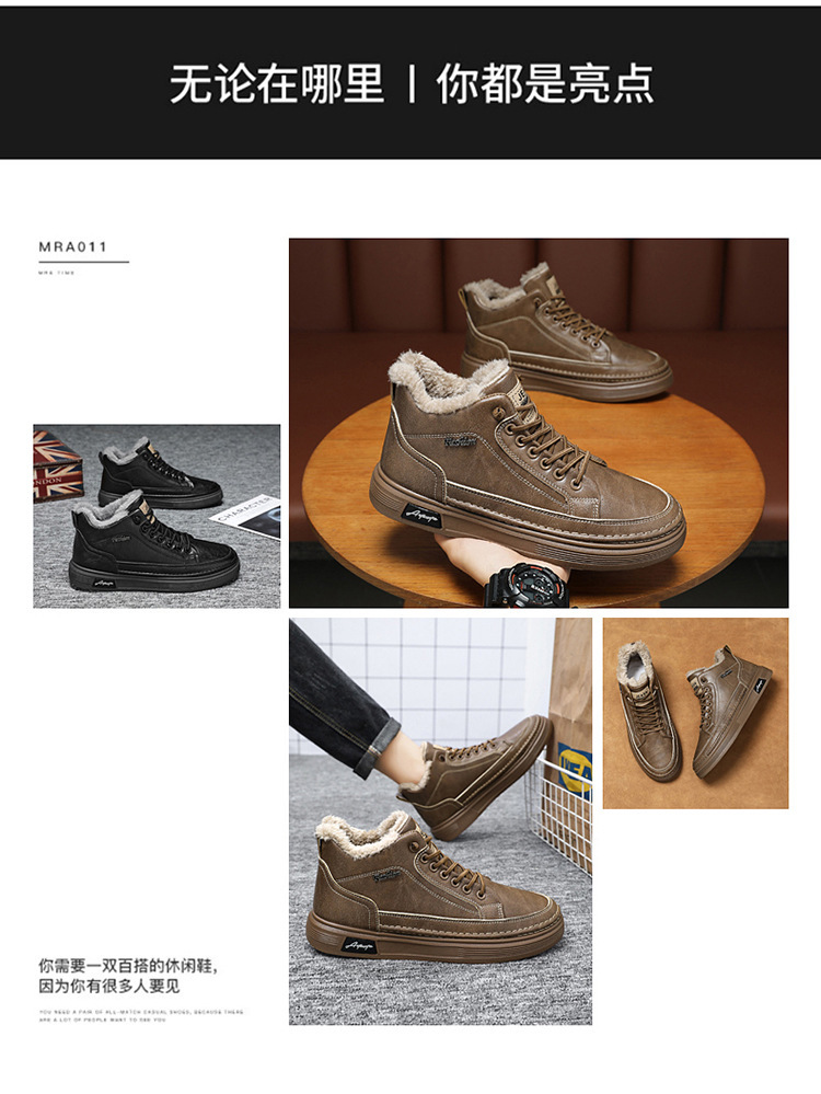 겨울 남성 신발 기모 하이탑 마틴 부츠 남성용 트렌디 모든 매치 요리사 신발 남성용 미끄럼 방지 두꺼운 따뜻한 면 신발스토어 가기