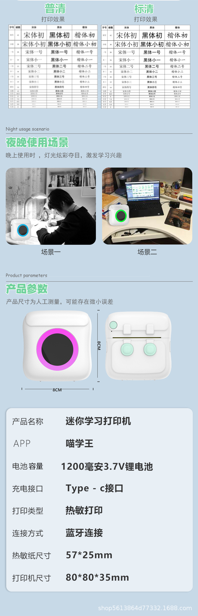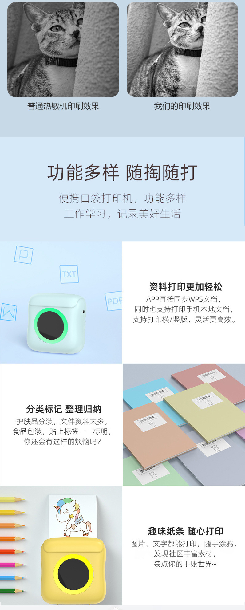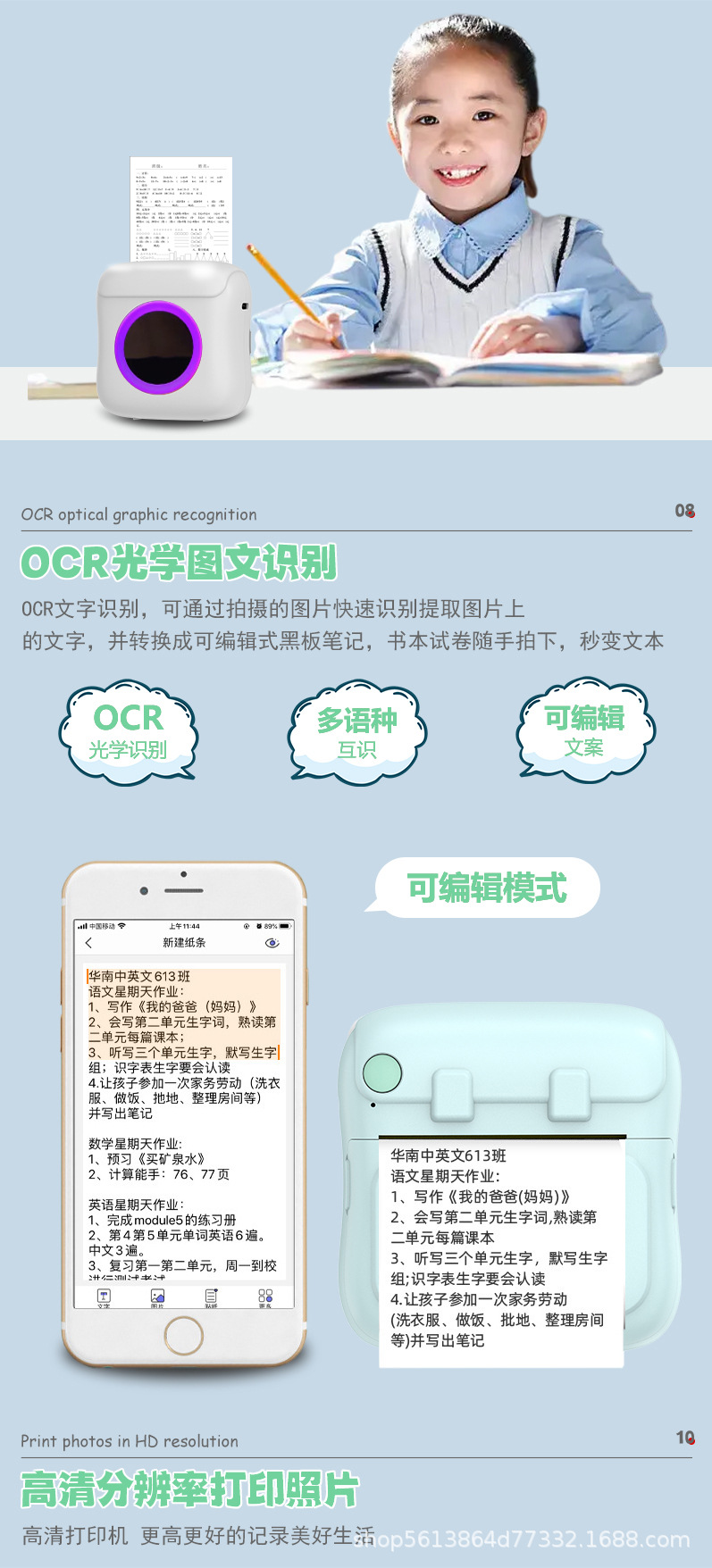 라벨 작은 휴대용 무선 열 사진 블루투스 프린터 포켓 학생 미니 잘못된 질문 라벨 인쇄스토어 가기