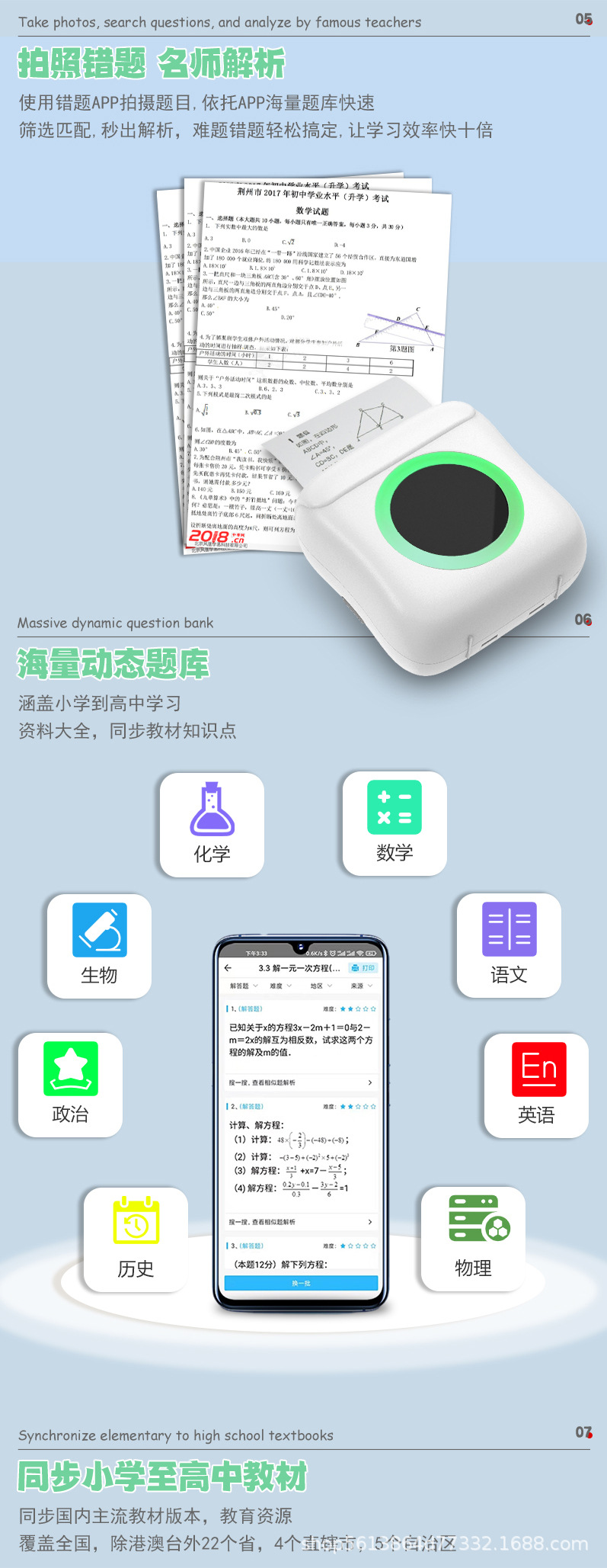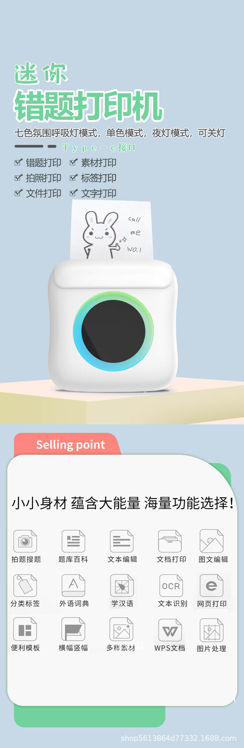 라벨 작은 휴대용 무선 열 사진 블루투스 프린터 포켓 학생 미니 잘못된 질문 라벨 인쇄