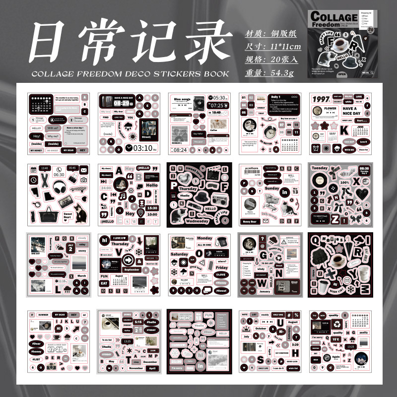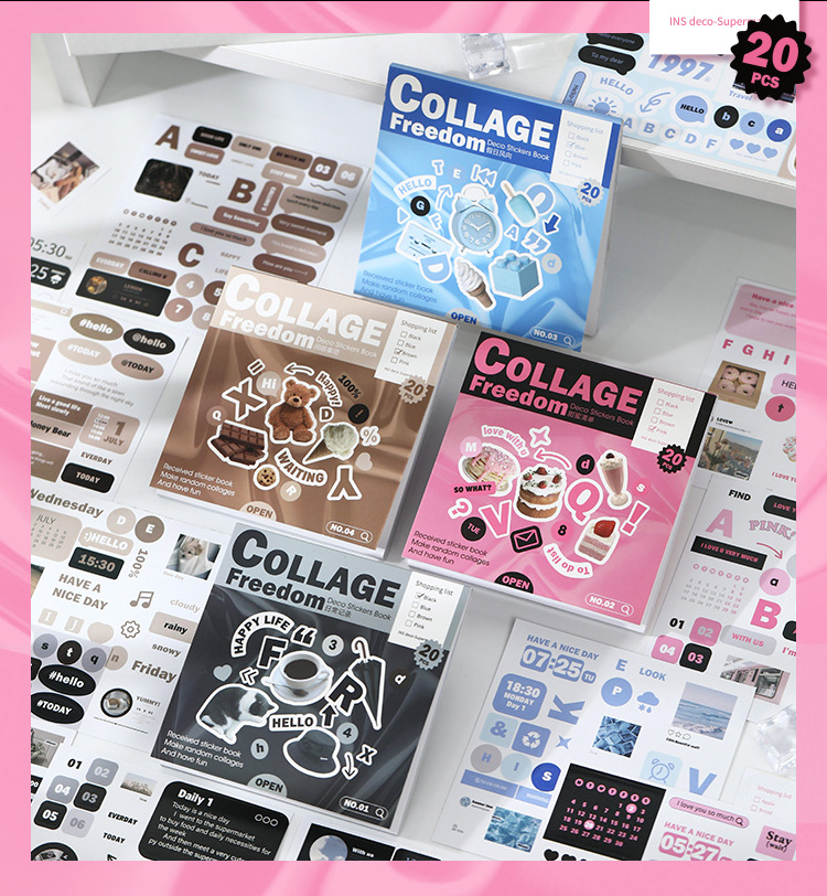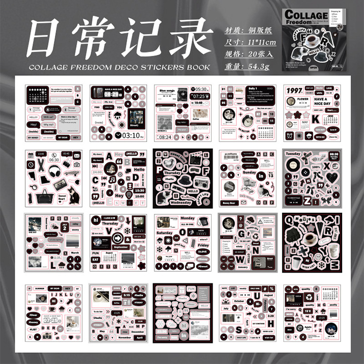 무료 콜라주 INS 데코 스티커 북 레트로 영어 컷 프리 핸드 계정 DIY 장식 재료 콜라주