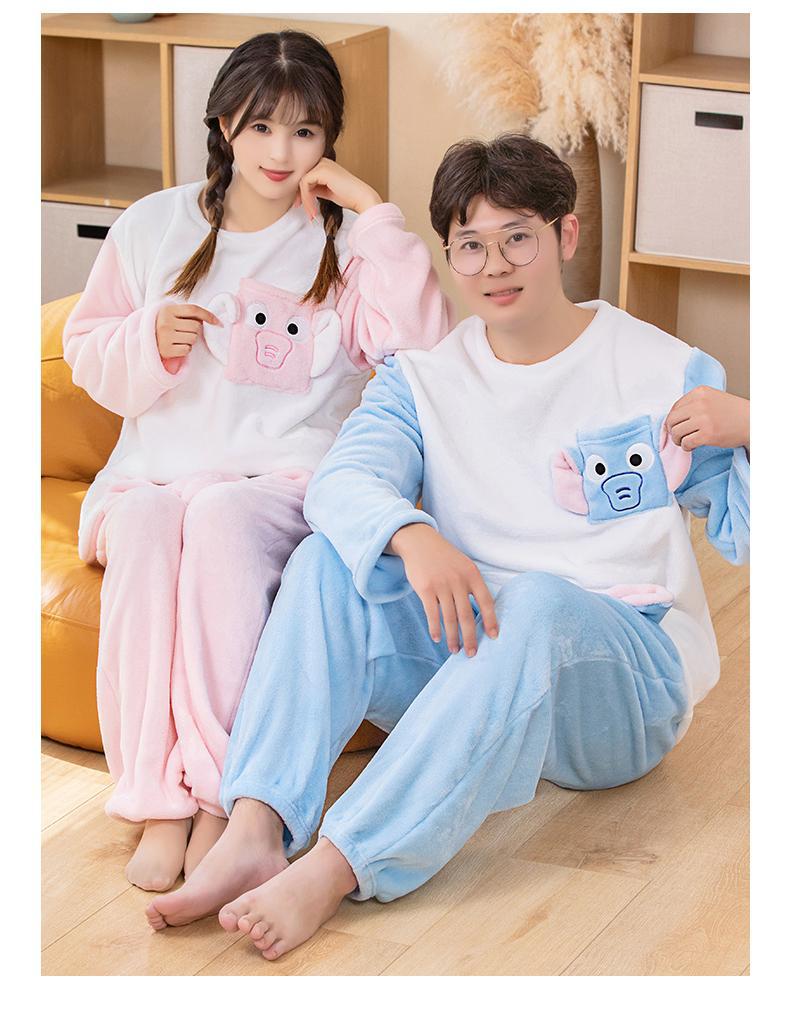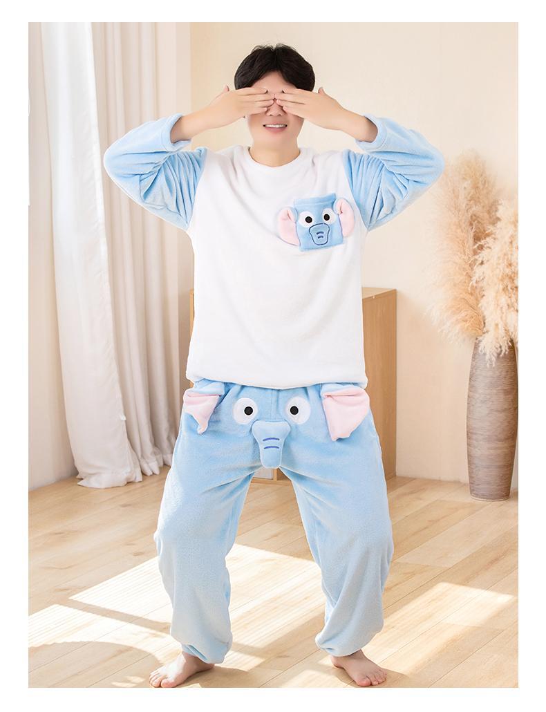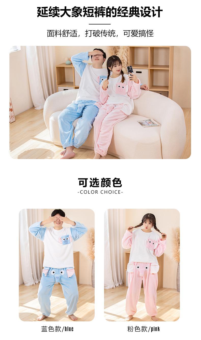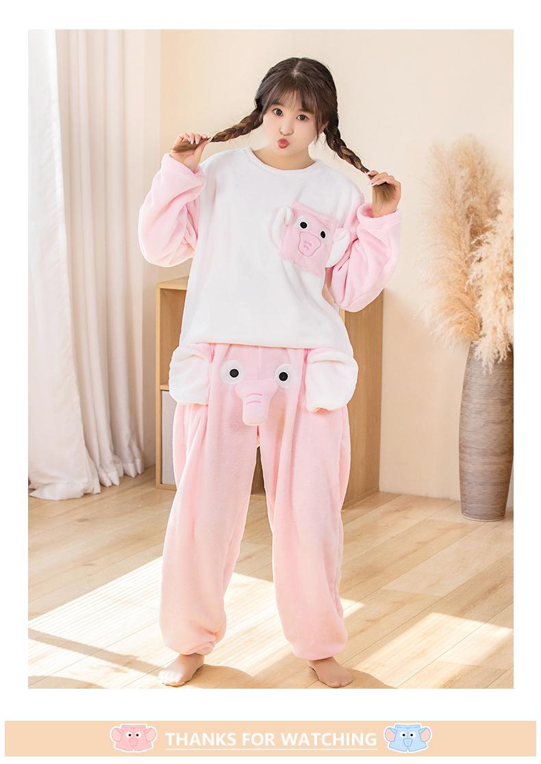 재미 끽끽 거리는 코끼리 바지 플란넬 귀여운 잠옷 세트 가을과 겨울 두꺼운 가정 옷
