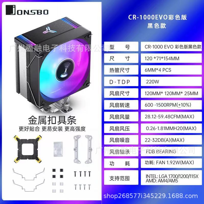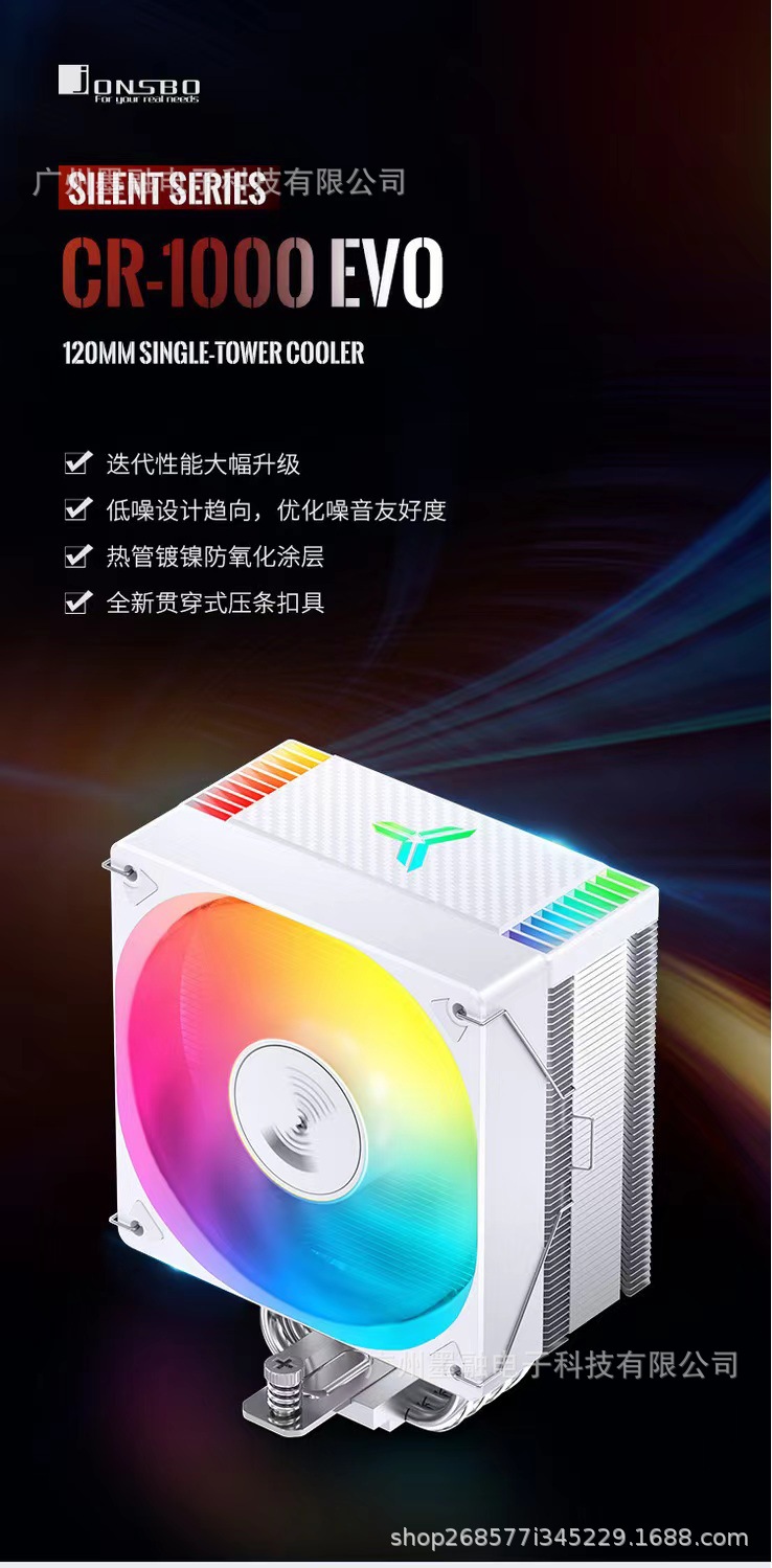 Jonsbo Qiao 시보 CR1000EVO 컴퓨터 CPU 라디에이터 12cm 다채로운 니켈 도금 4 구리 튜브 pwm 팬스토어 가기