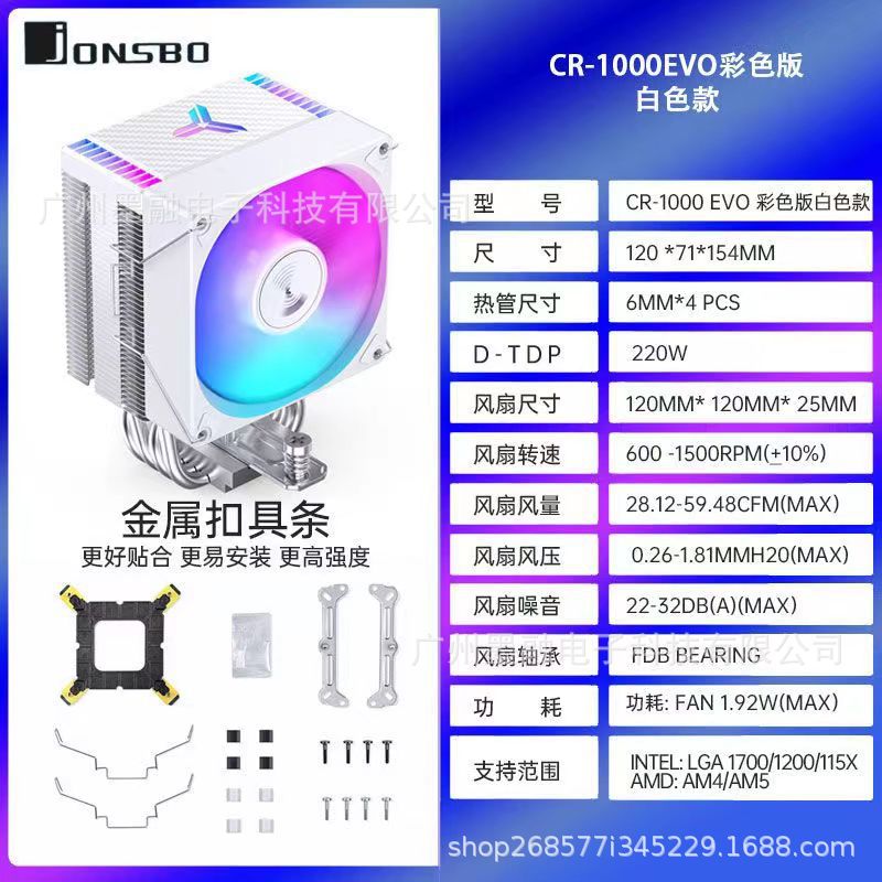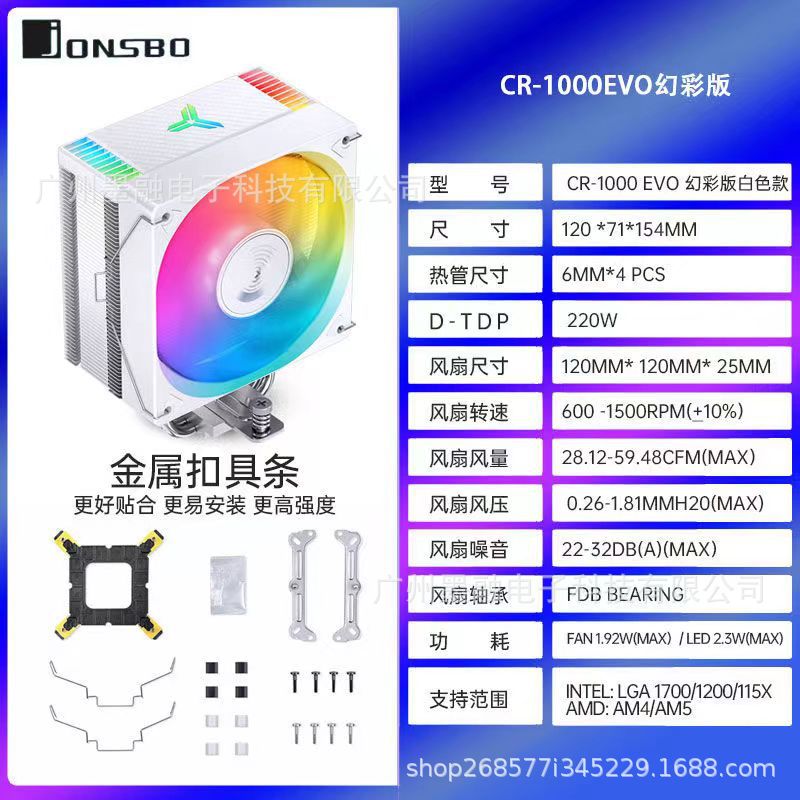 Jonsbo Qiao 시보 CR1000EVO 컴퓨터 CPU 라디에이터 12cm 다채로운 니켈 도금 4 구리 튜브 pwm 팬
