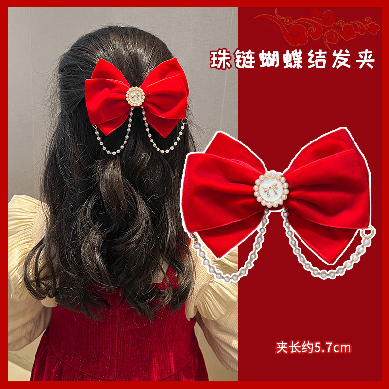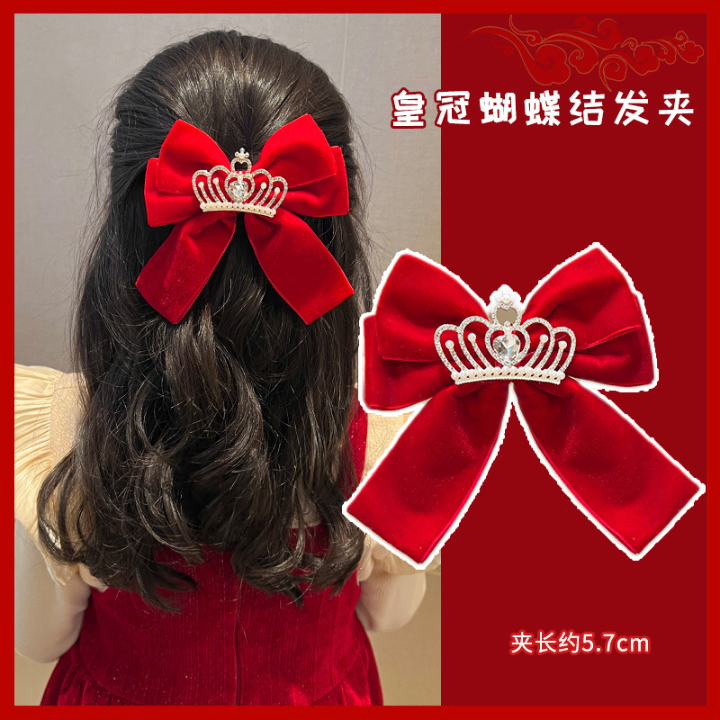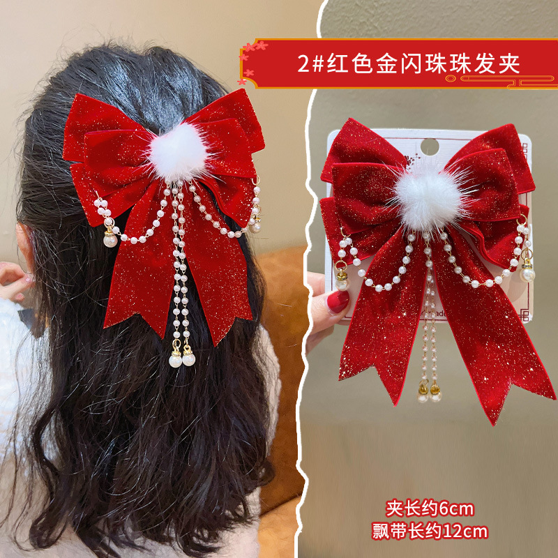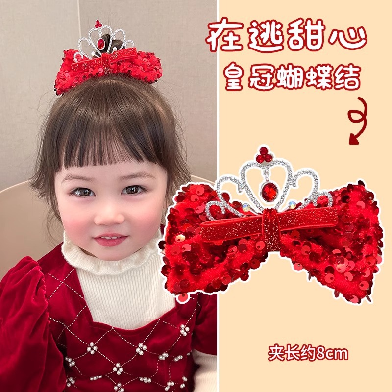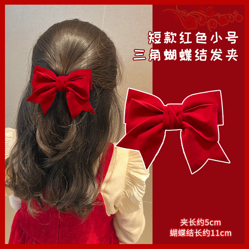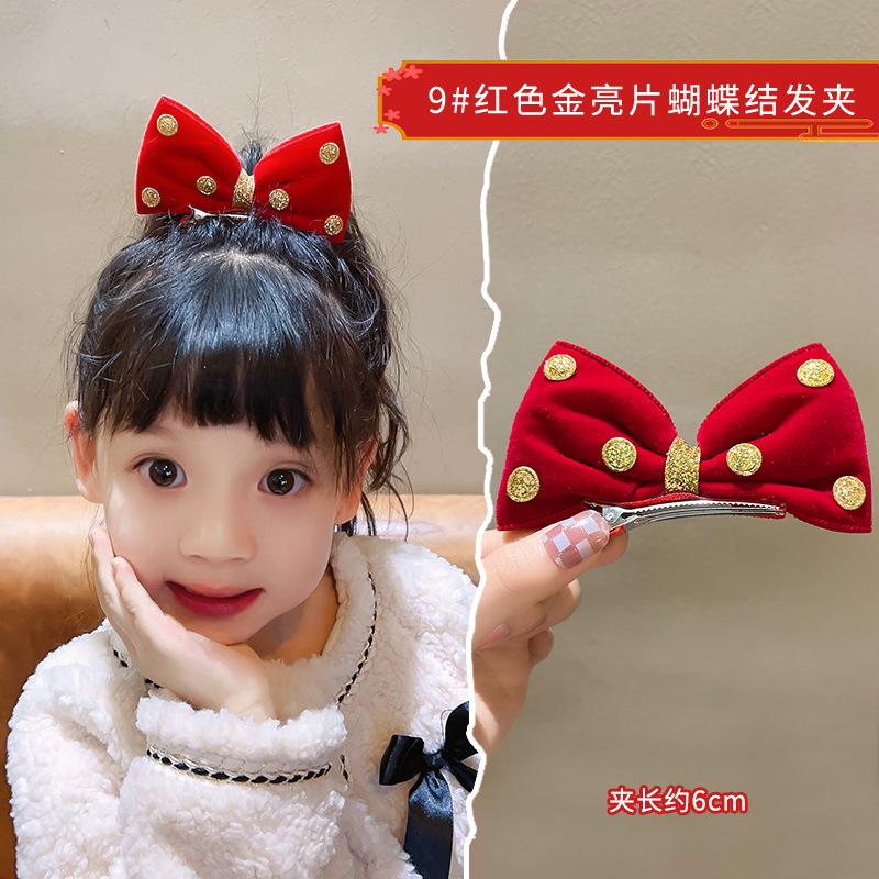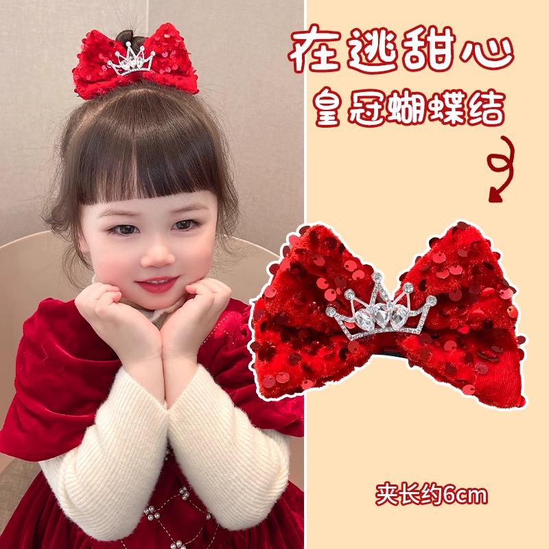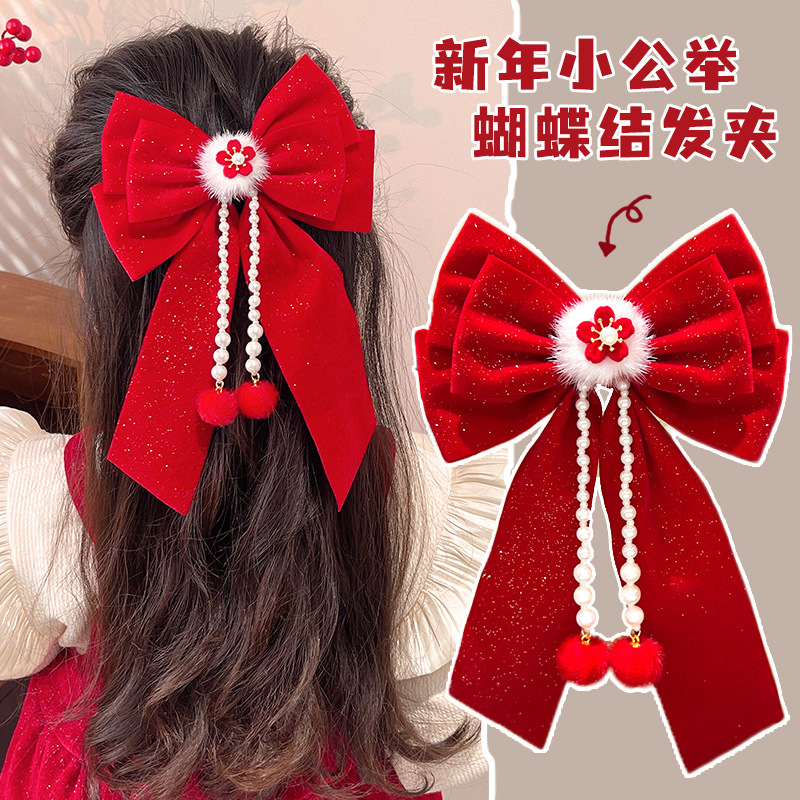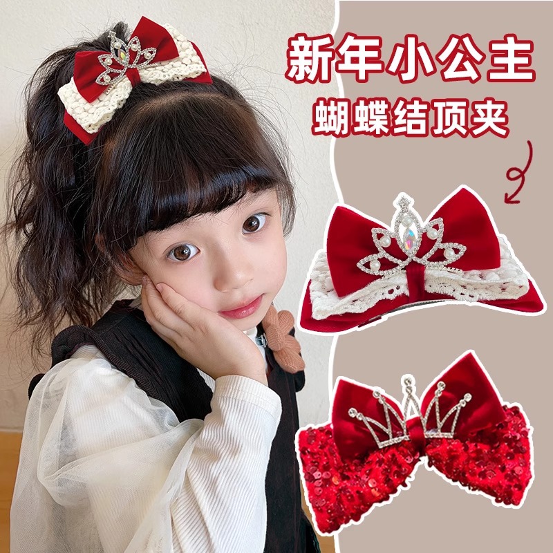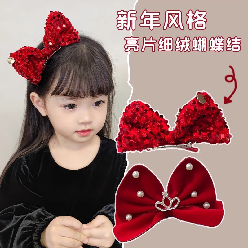 새해 머리핀 새해 머리 액세서리 어린이 고급 감각 빨간 머리핀 틈새 소녀 활 보석 아기 머리