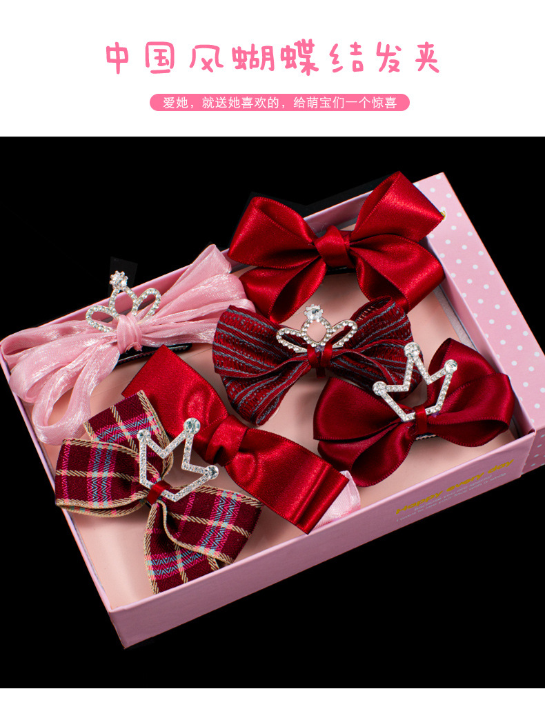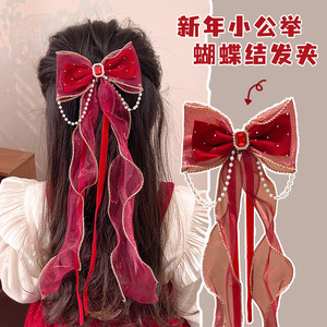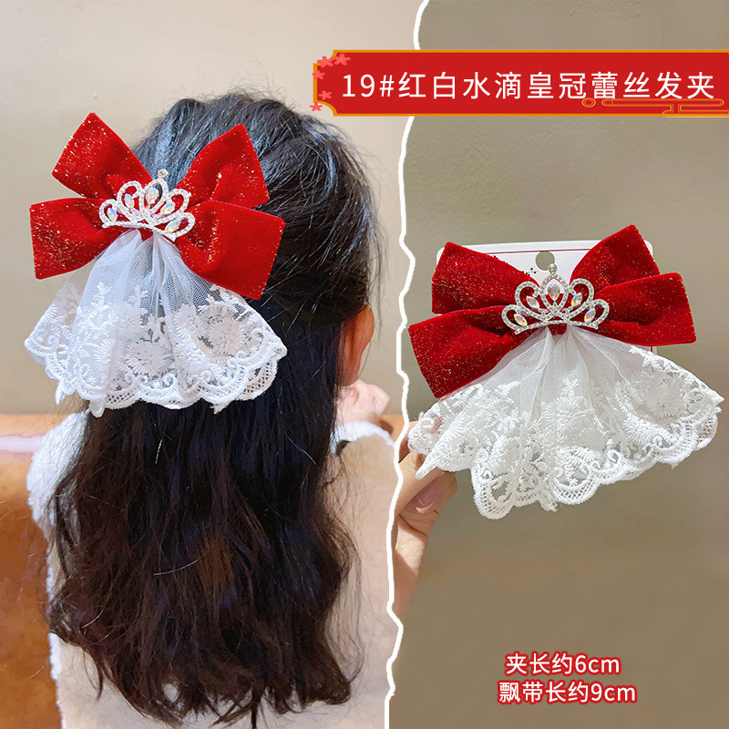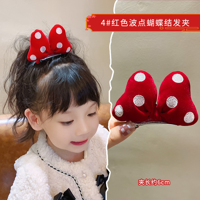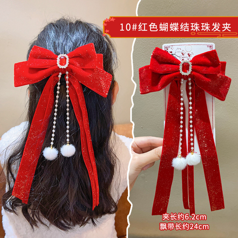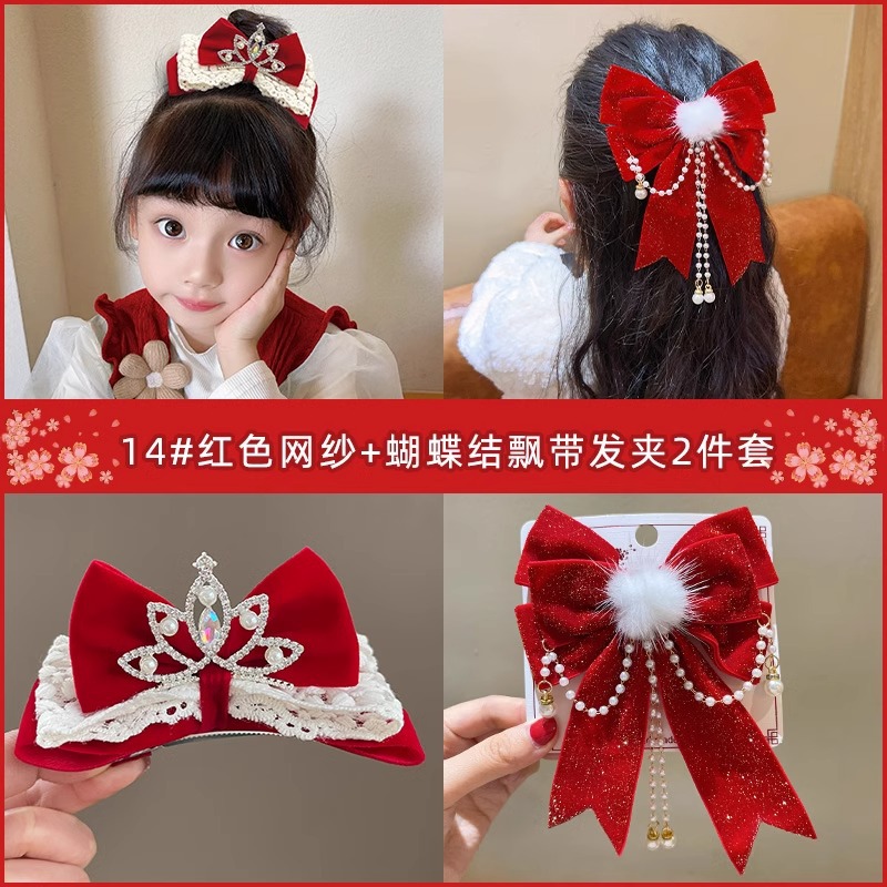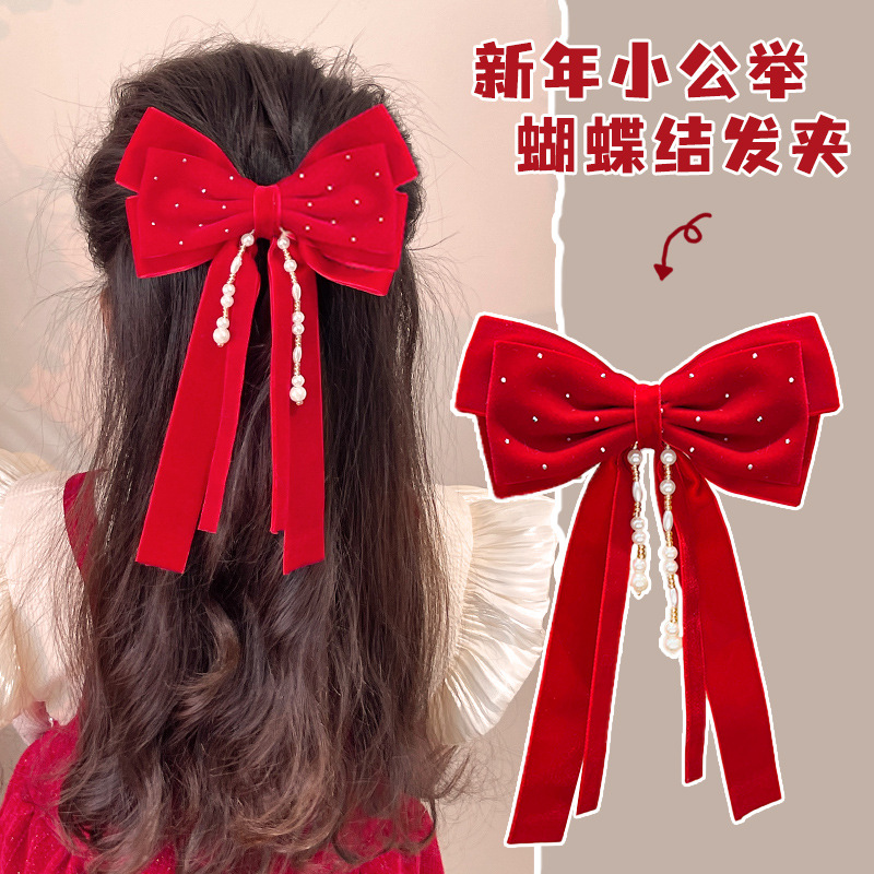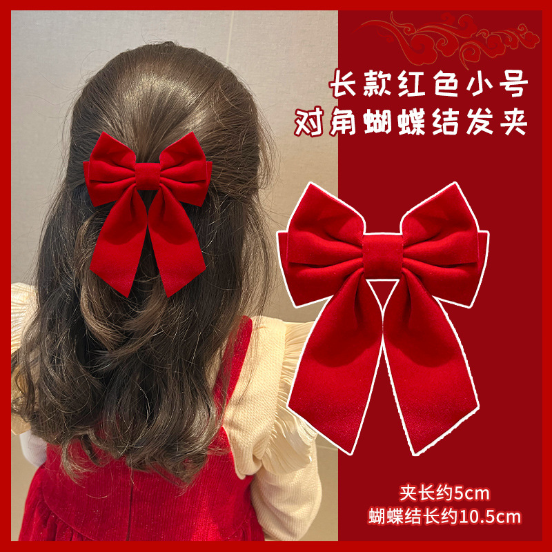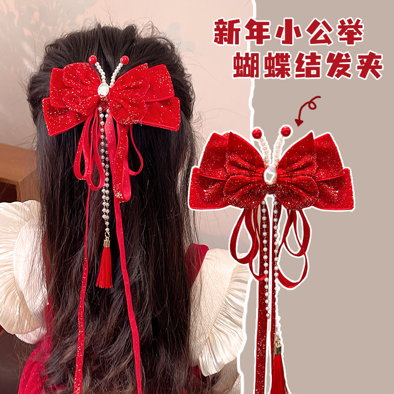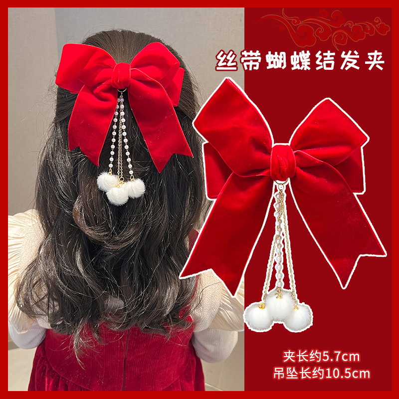 새해 머리핀 새해 머리 액세서리 어린이 고급 감각 빨간 머리핀 틈새 소녀 활 보석 아기 머리