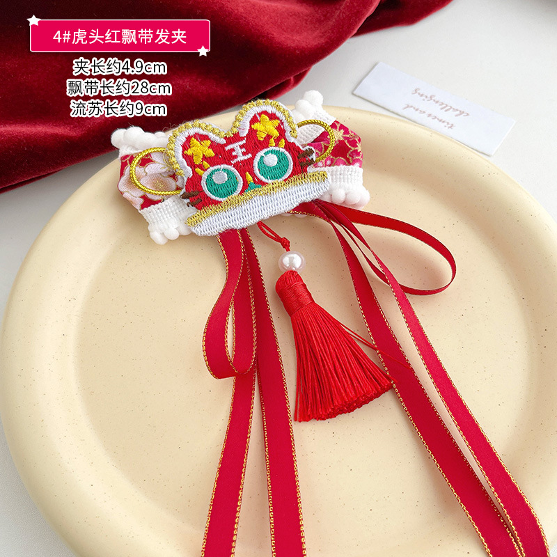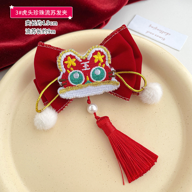 • 호랑이 머리 빨간 리본 머리핀