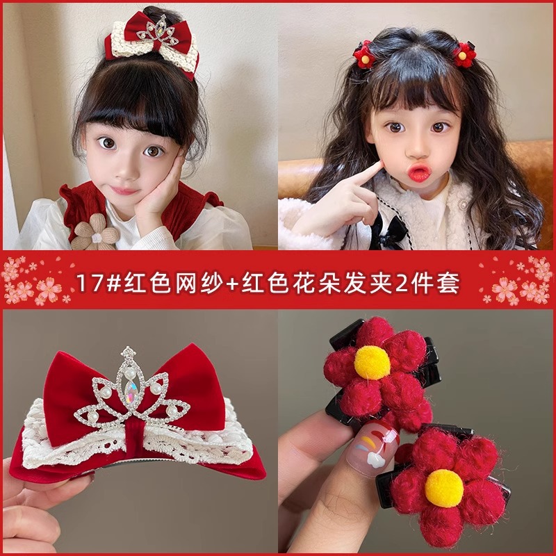 새해 머리핀 새해 머리 액세서리 어린이 고급 감각 빨간 머리핀 틈새 소녀 활 보석 아기 머리스토어 가기