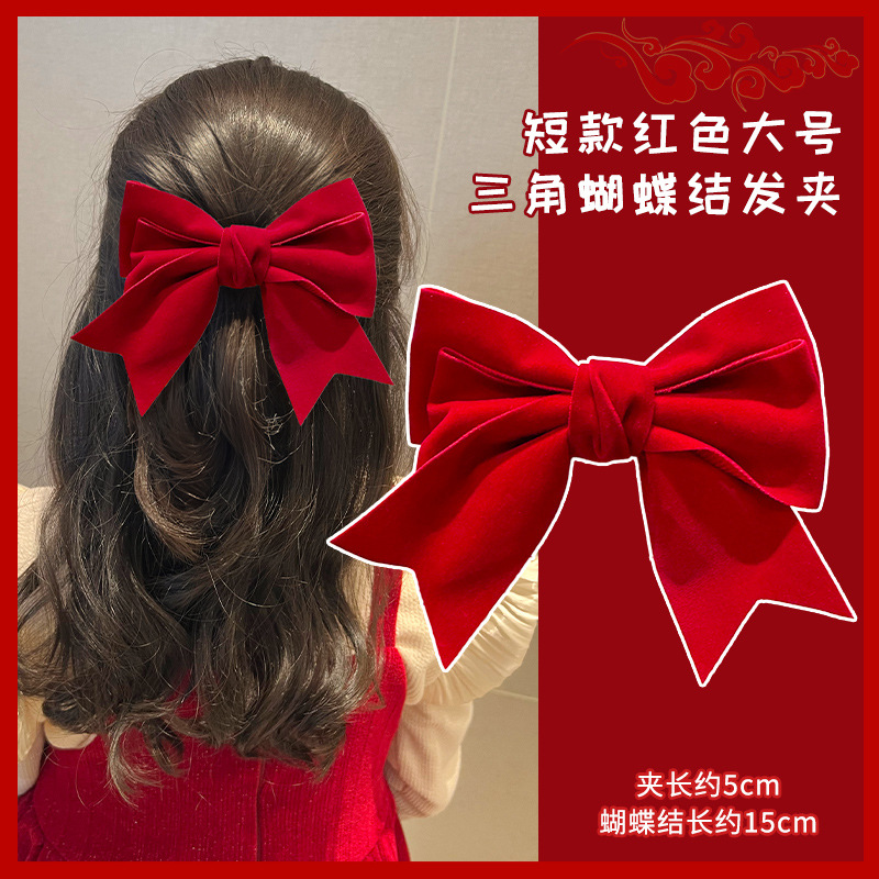 • 1#짧은 빨간색 대형 삼각형 리본 머리핀