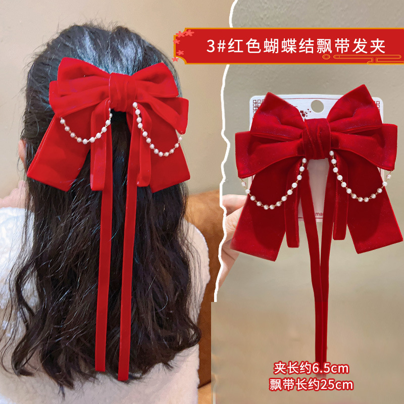 • 3#붉은 리본 리본 머리핀 [새해 스타일]