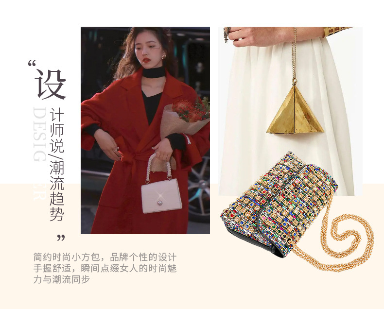 새로운 스타일 연예인 크로스 바디 이브닝 백 유행 다이아몬드 핸드 백 유럽과 미국의 하이 엔드 센스 절묘한 스퀘어 여성용 클러치 백