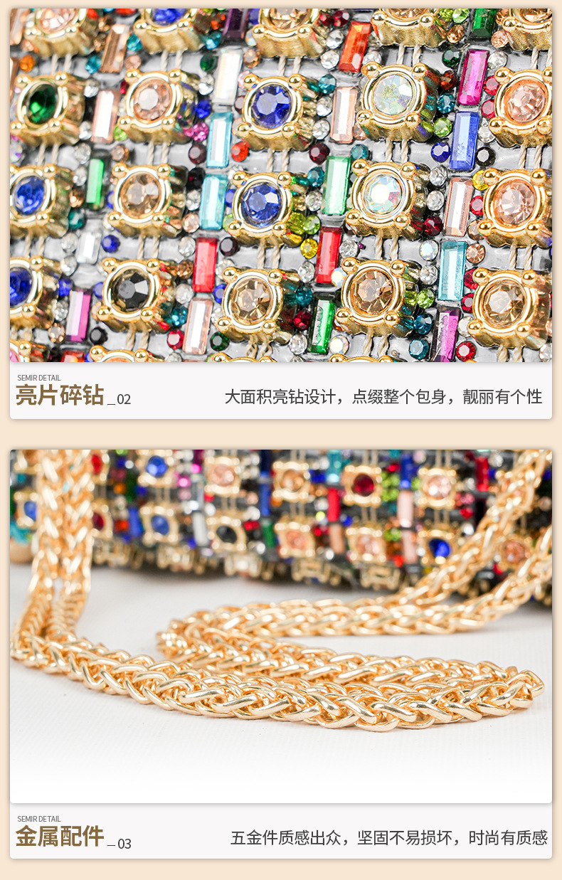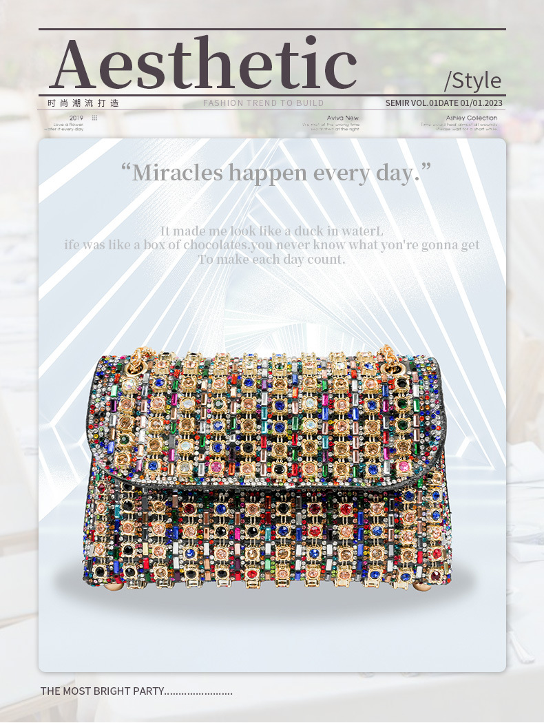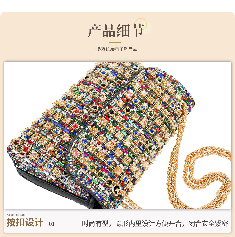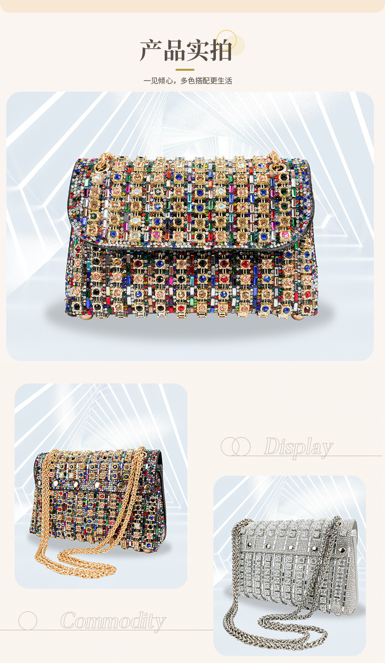 새로운 스타일 연예인 크로스 바디 이브닝 백 유행 다이아몬드 핸드 백 유럽과 미국의 하이 엔드 센스 절묘한 스퀘어 여성용 클러치 백스토어 가기