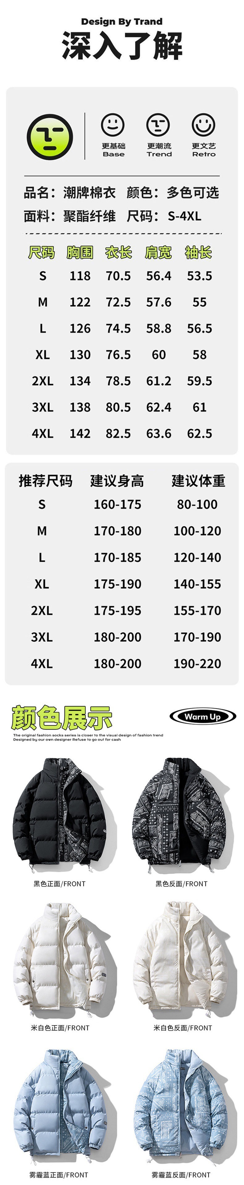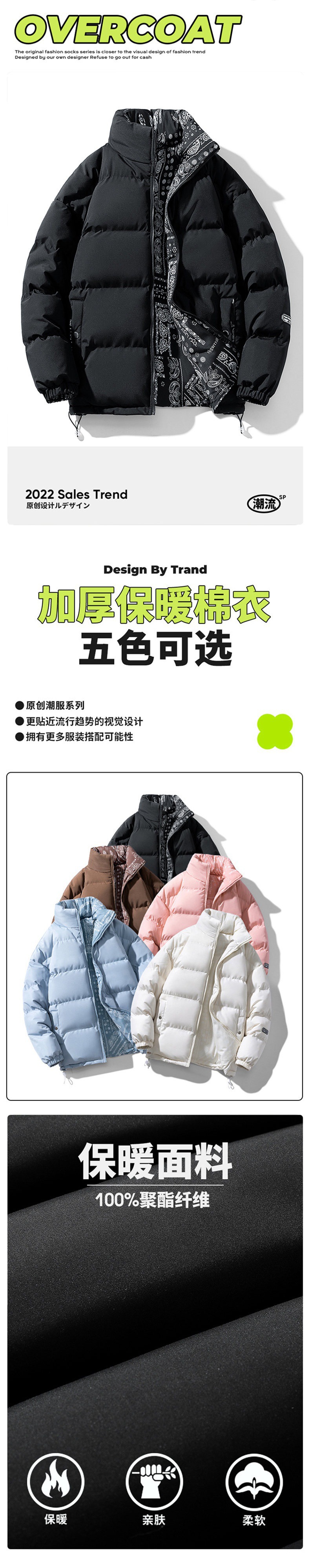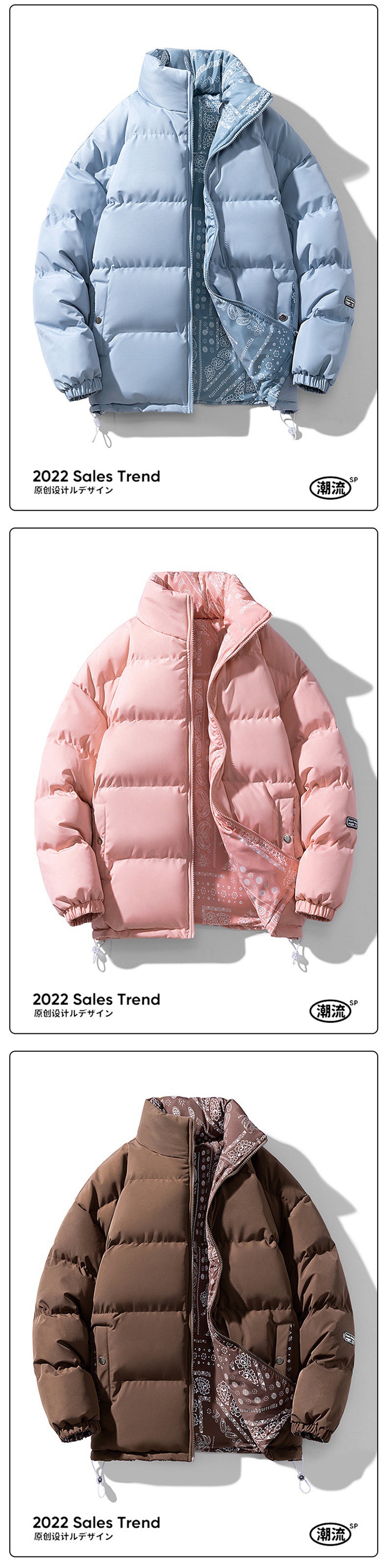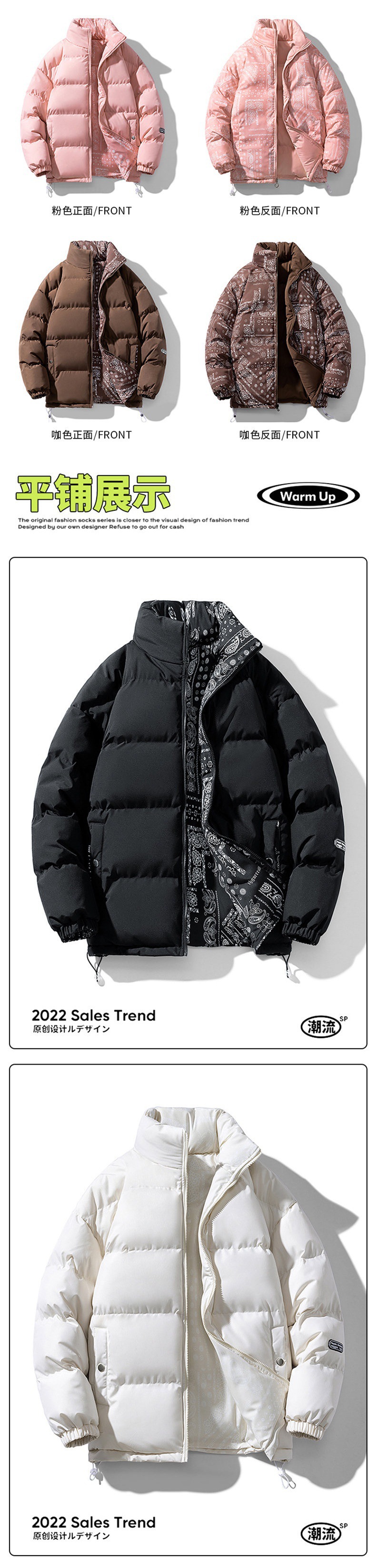 겨울 새로운 남자의 면 옷 캐슈 꽃 양면 착용 유행 세로 칼라 면 옷 남자의 커플 위장 면 코트 재킷스토어 가기