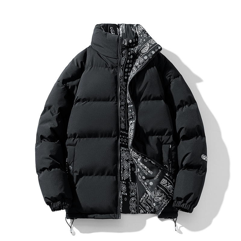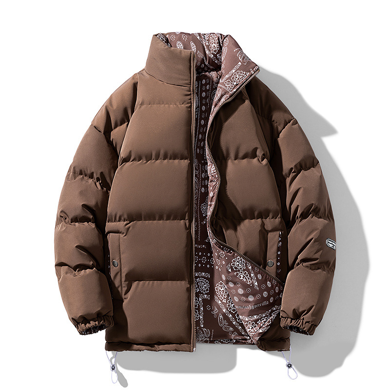겨울 새로운 남자의 면 옷 캐슈 꽃 양면 착용 유행 세로 칼라 면 옷 남자의 커플 위장 면 코트 재킷