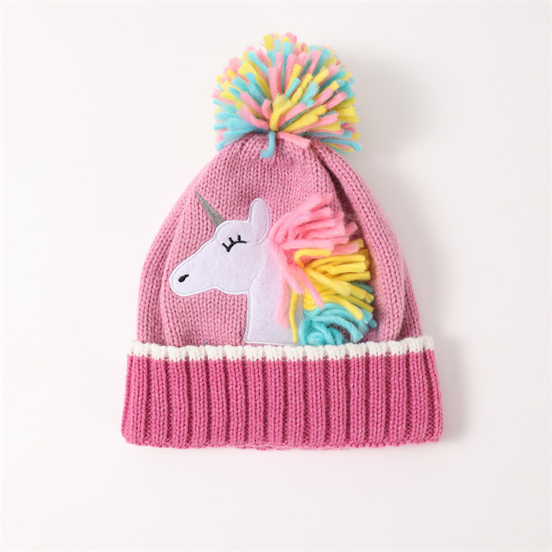 가을과 겨울 어린이의 새로운 유니콘 모자 장갑 기모 따뜻한 소년과 소녀 양모 모자 만화 세트 도매스토어 가기