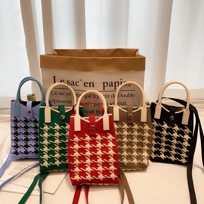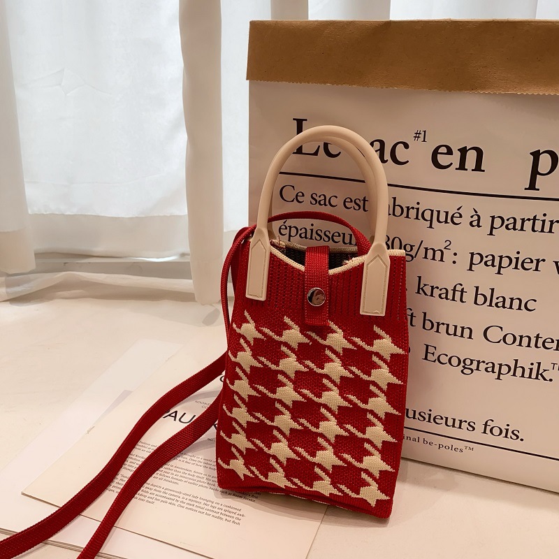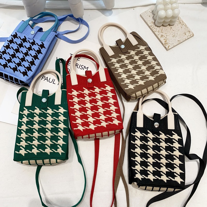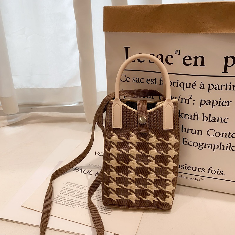 세련된 모든 매치 Houndstooth 짠 휴대 전화 가방 소녀의 미니 휴대용 크로스 바디 동전 지갑 가방스토어 가기