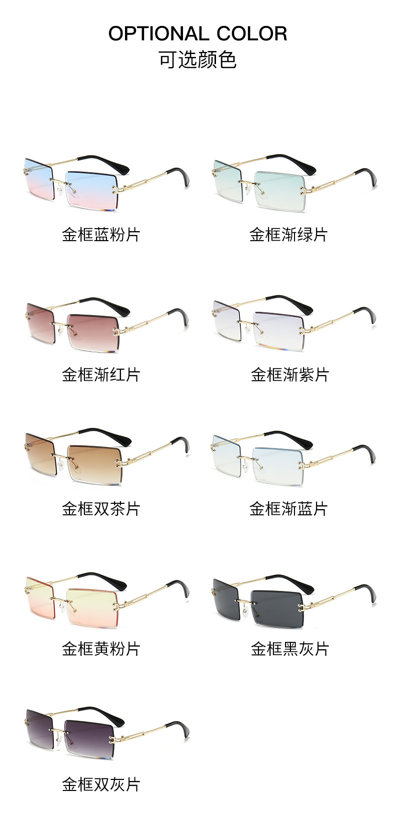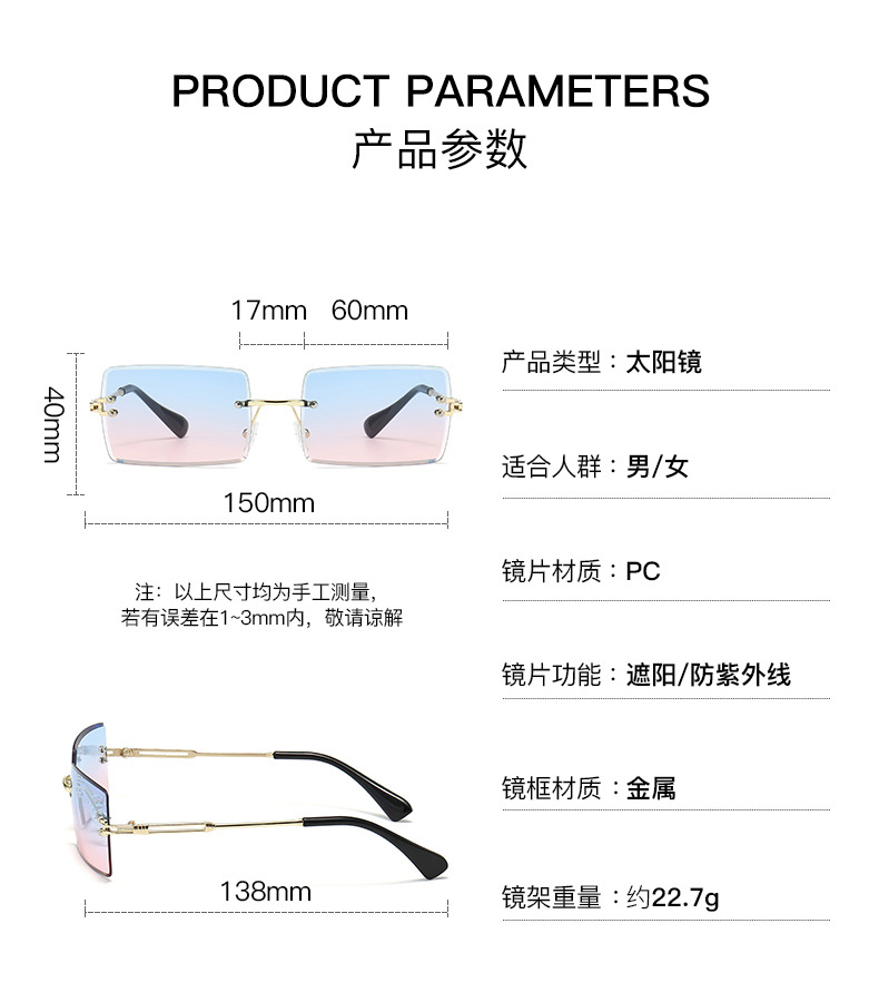 2025년 신형 무테 사각형 해양 스타일 선글라스 유럽 및 미국 패션 인플루언서 스트리트 스타일 선글라스